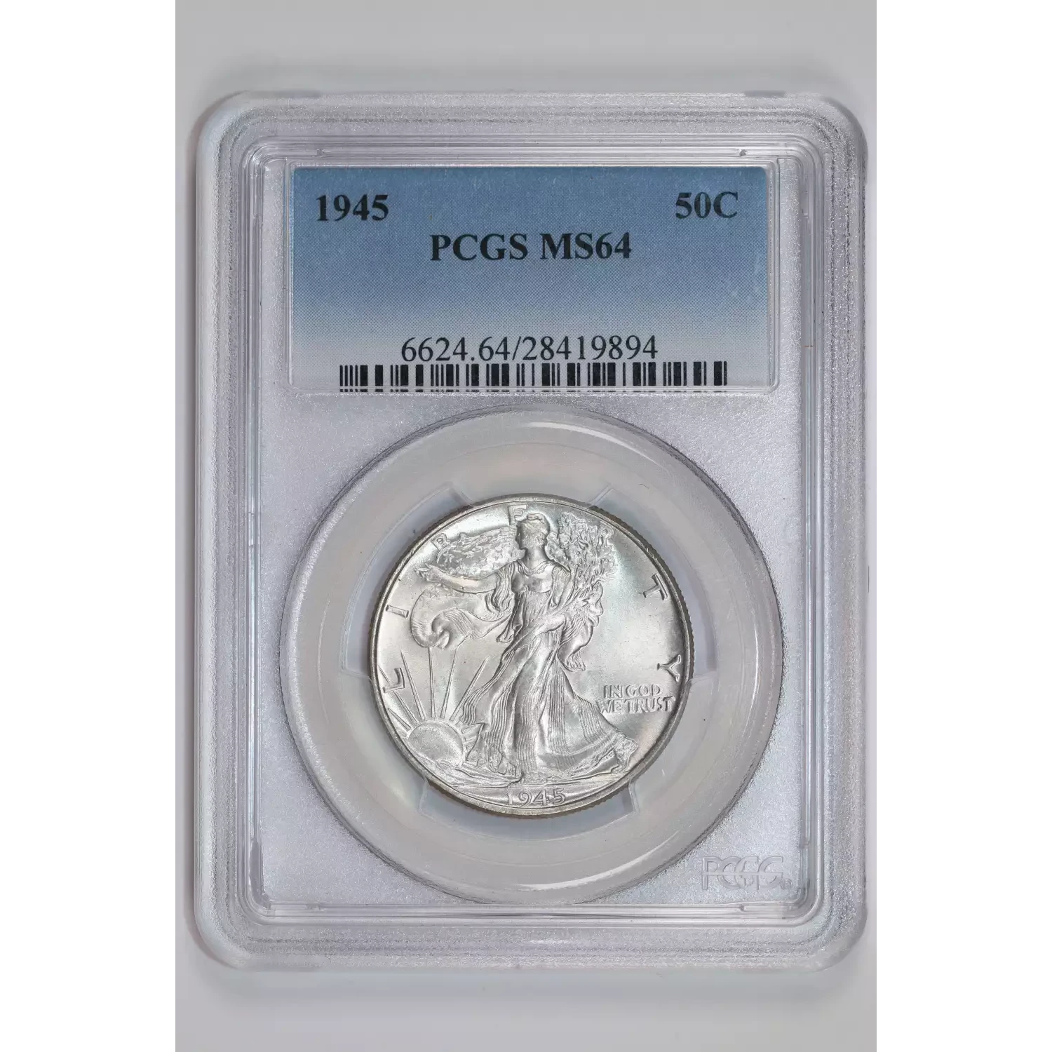 1945 WALKING LIBERTY HALF DOLLAR PCGS MS64