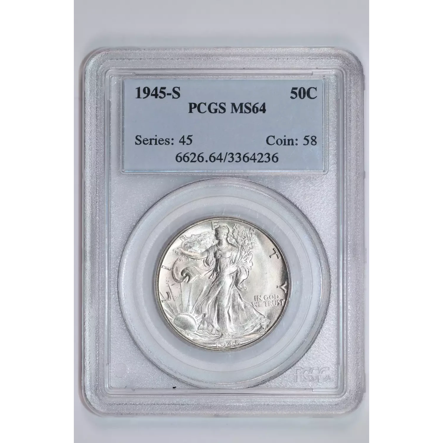 1945-S Half Dollars Liberty Walking PCGS MS-64