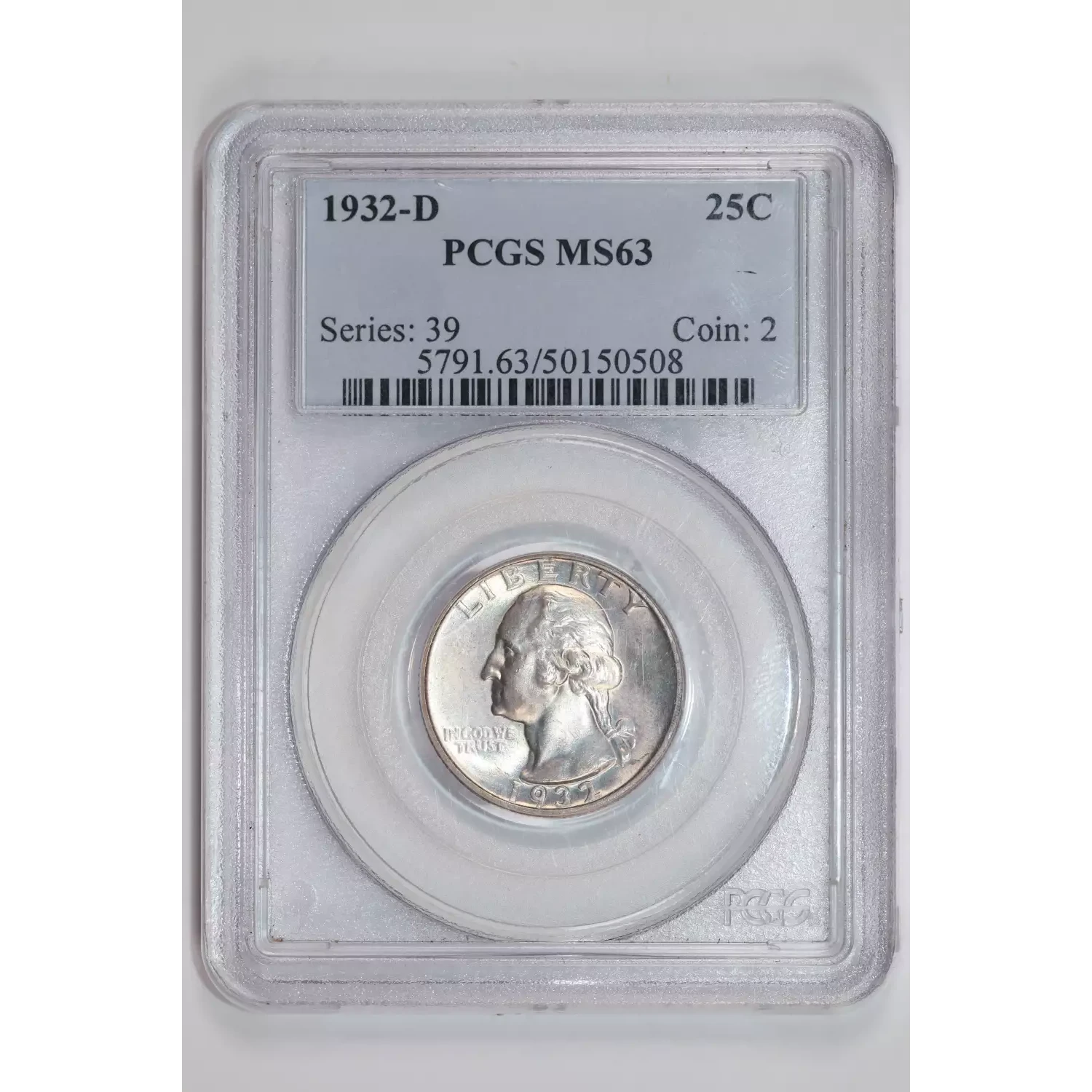 1932-D Quarter Dollars Silver Coinage PCGS MS-63