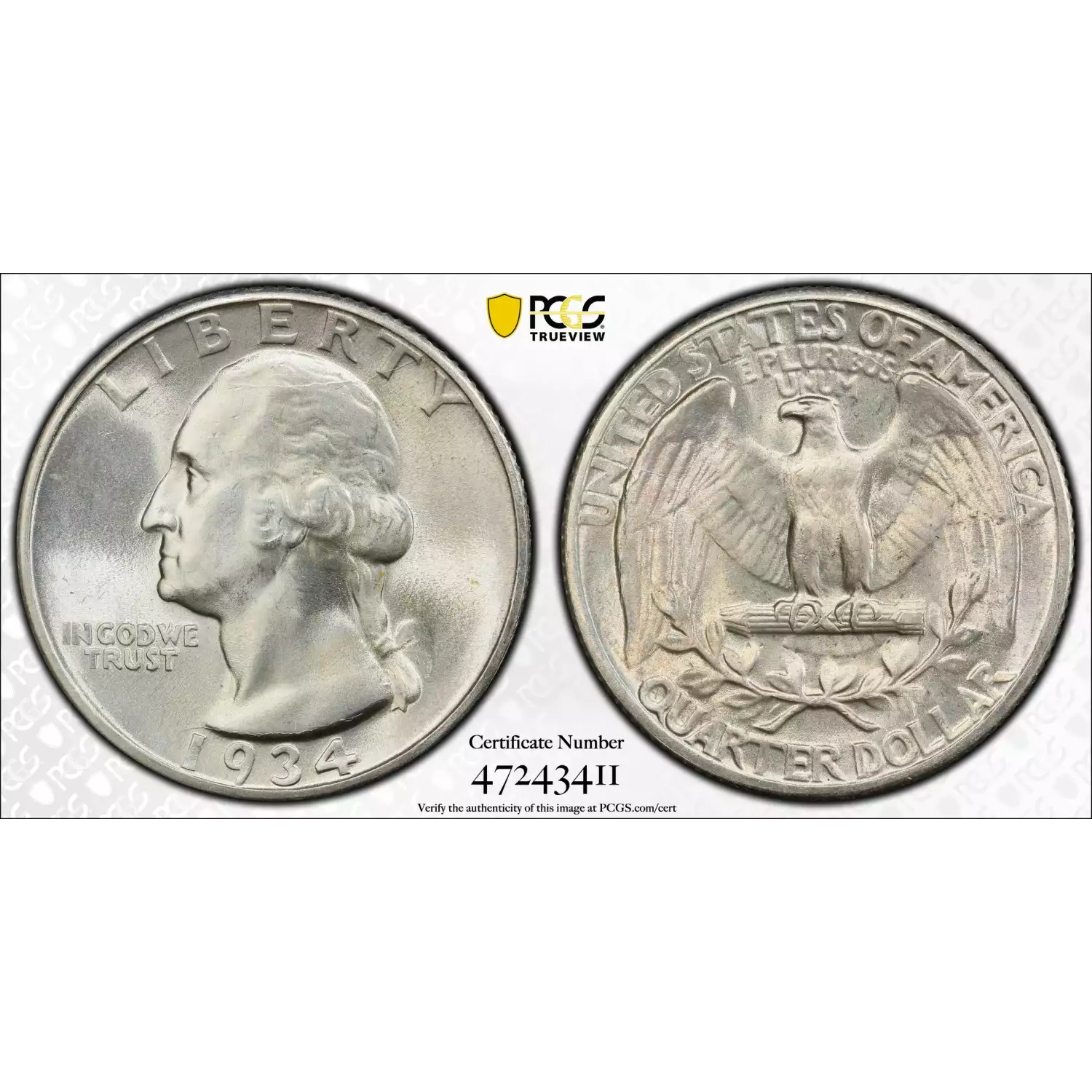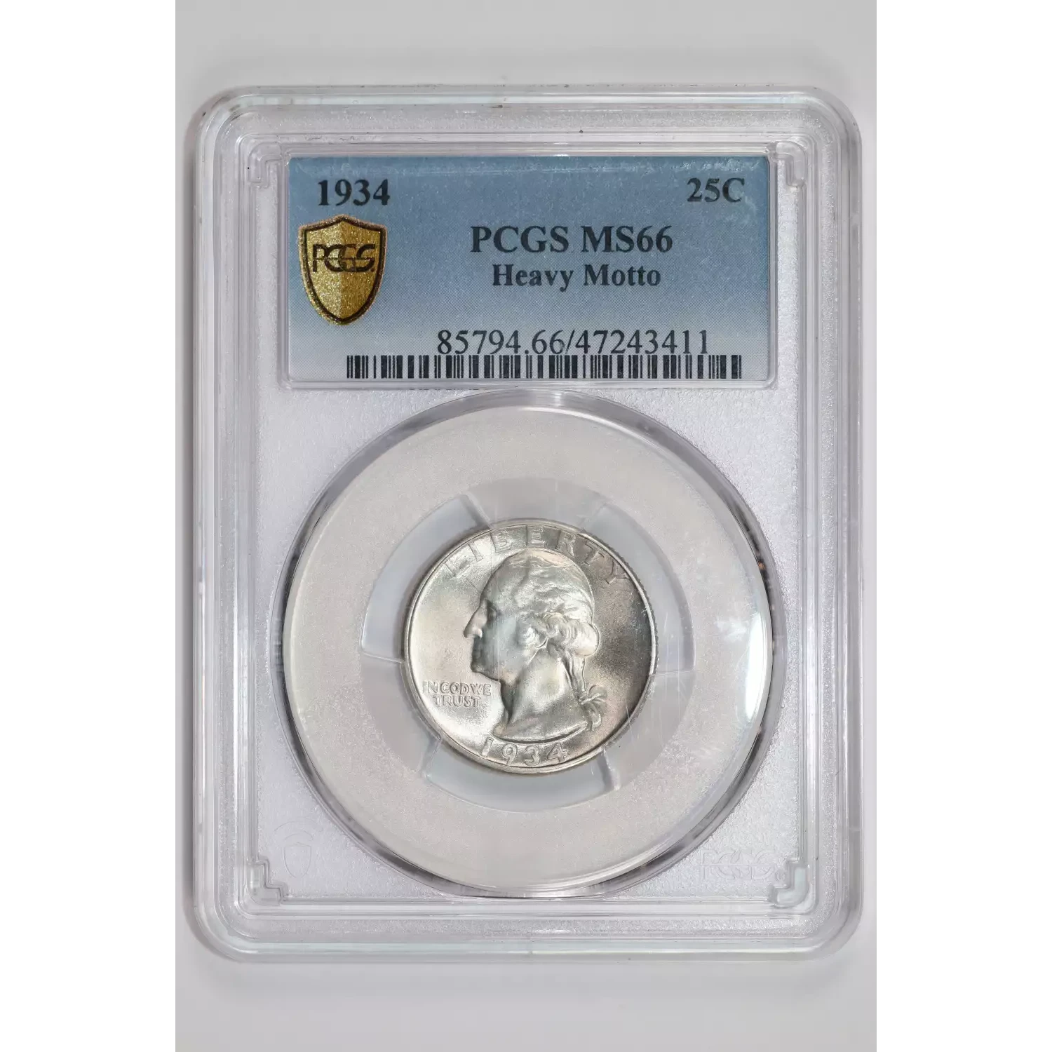 1934 Quarter Dollars Silver Coinage PCGS MS-66 Heavy Motto