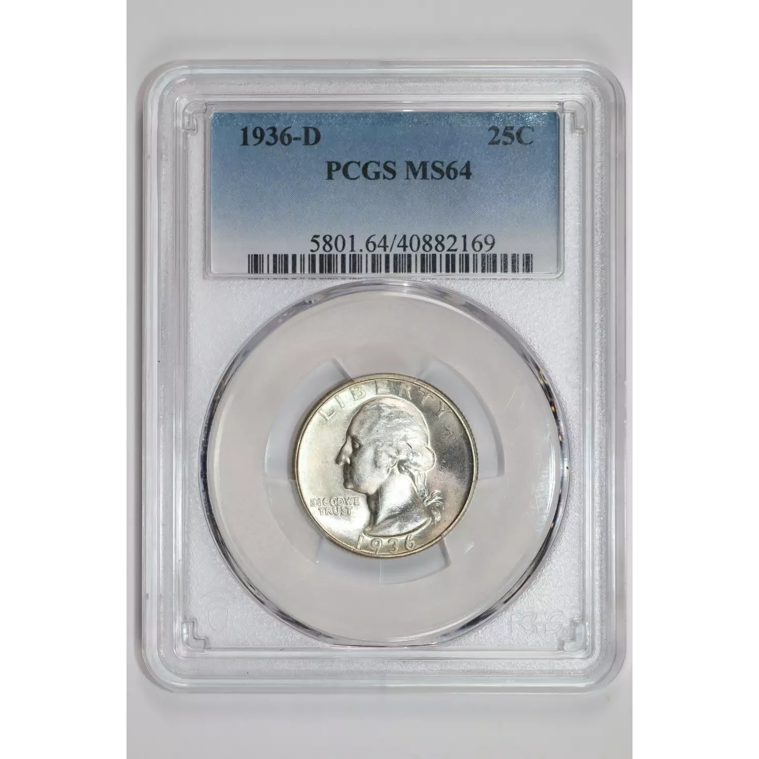 1936-D Quarter Dollars Silver Coinage PCGS MS-64