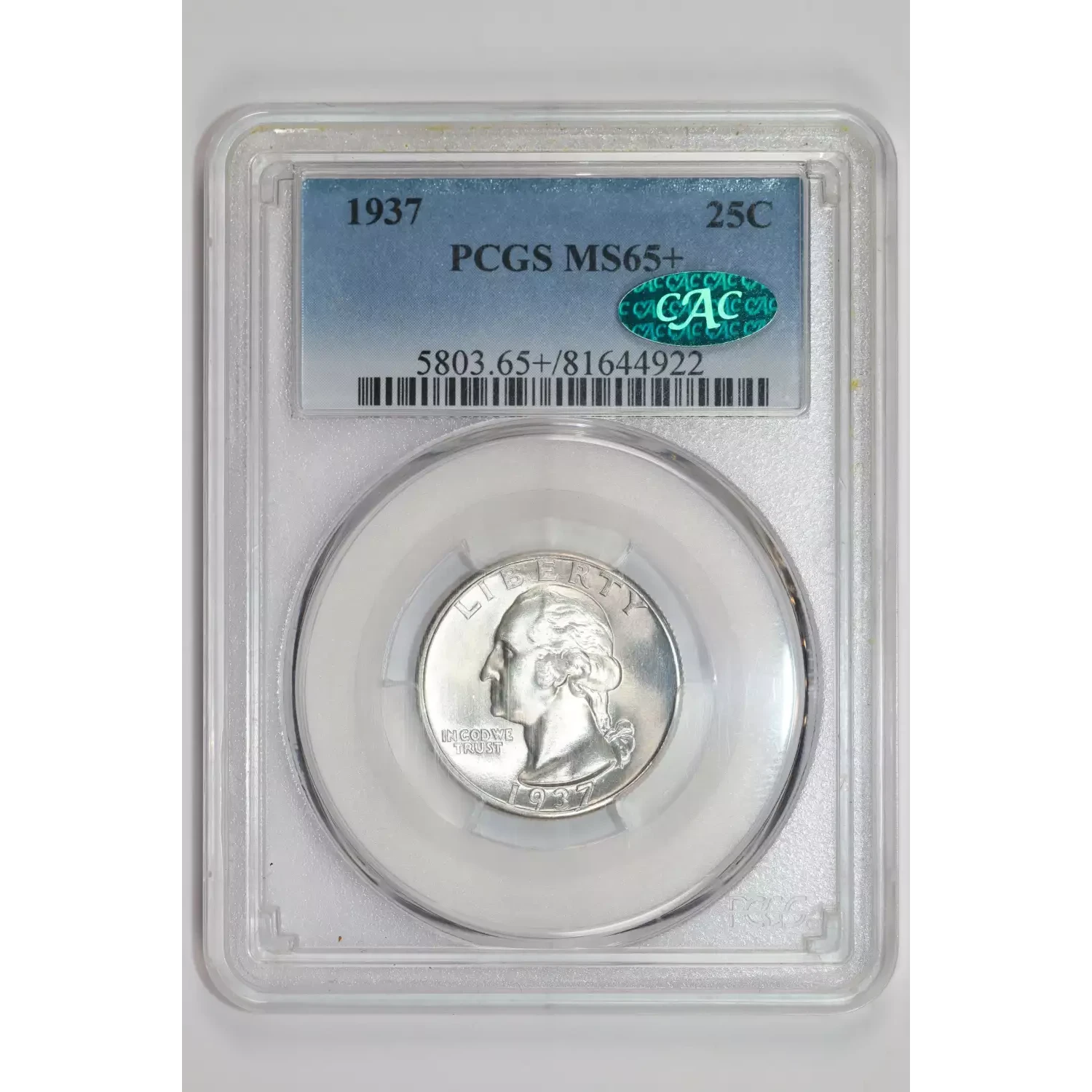 1937 WASHINGTON QUARTER PCGS MS65+ CAC