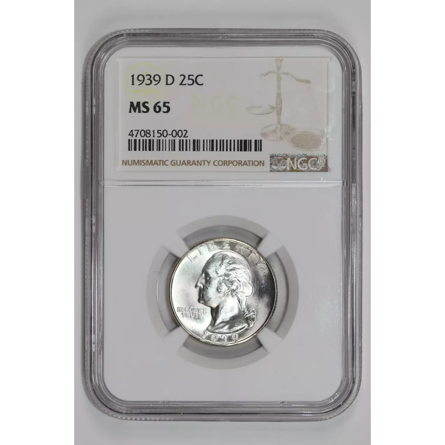 1939-D Quarter Dollars Silver Coinage NGC MS-65