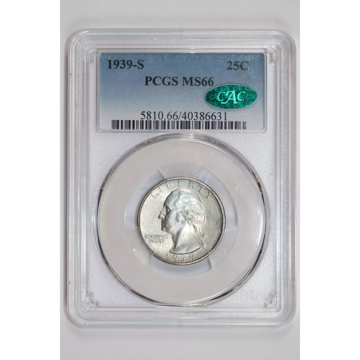 1939-S WASHINGTON QUARTER PCGS MS66 CAC