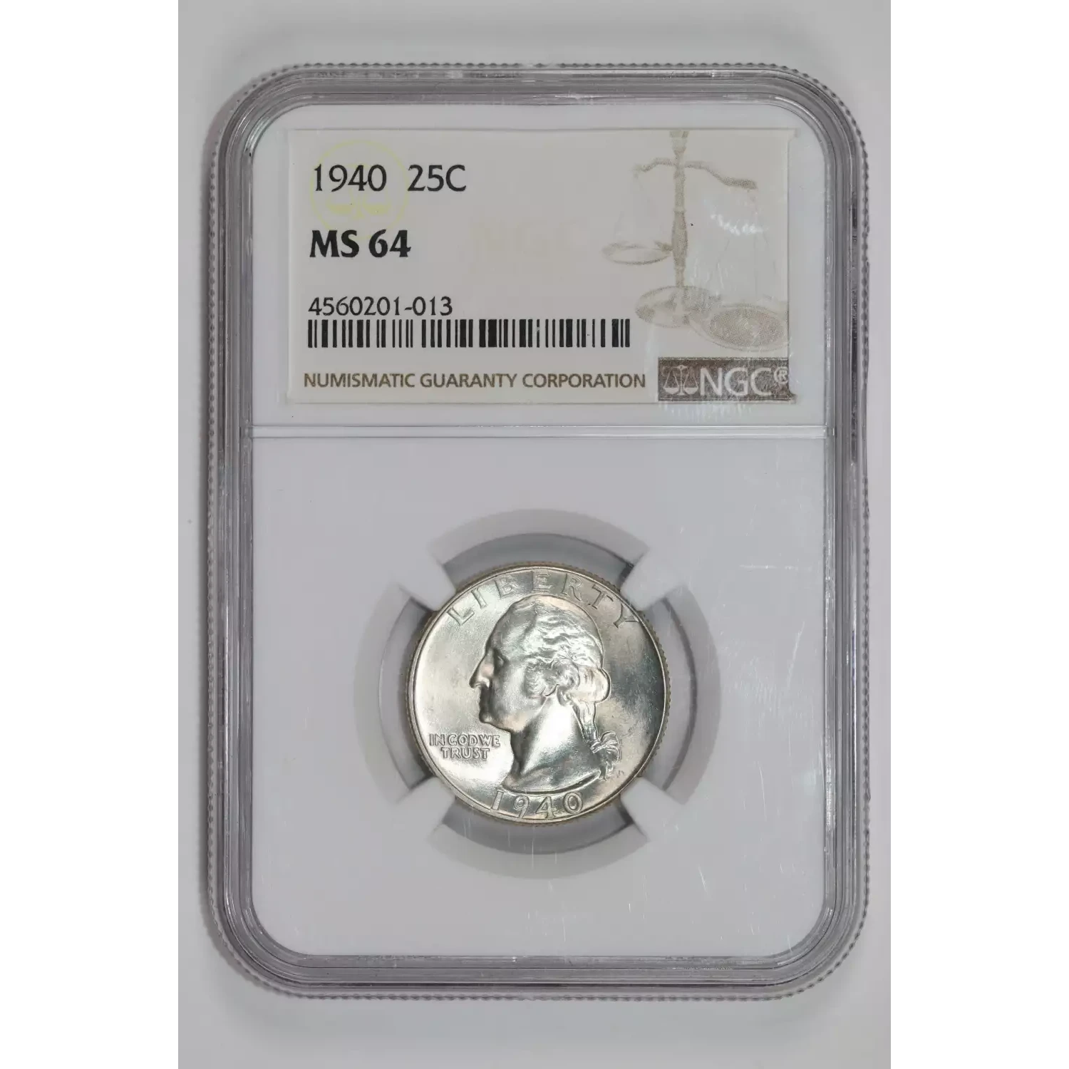 1940 Quarter Dollars Silver Coinage NGC MS-64