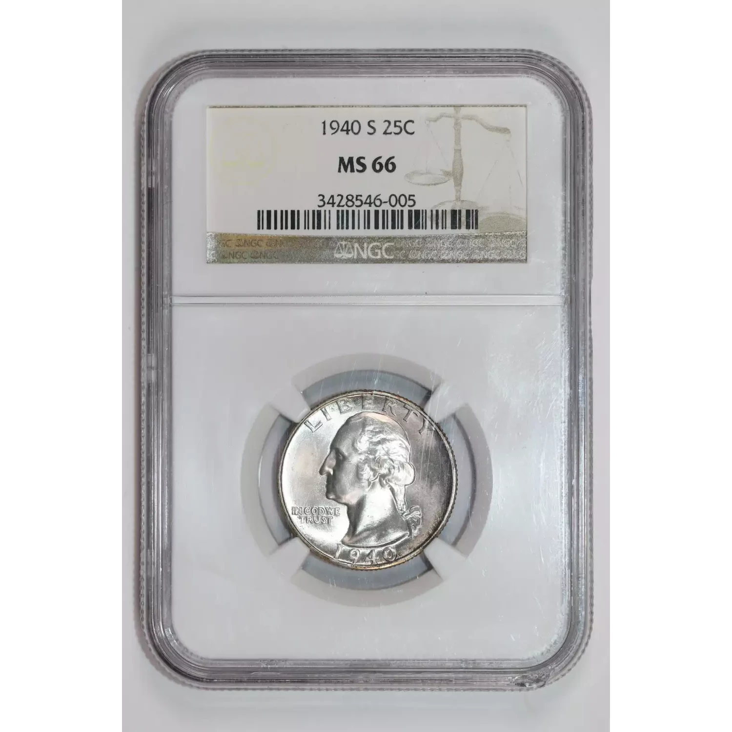 1940-S Quarter Dollars Silver Coinage NGC MS-66