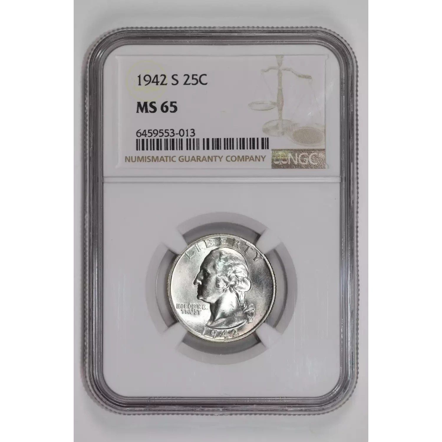 1942-S Quarter Dollars Silver Coinage NGC MS-65