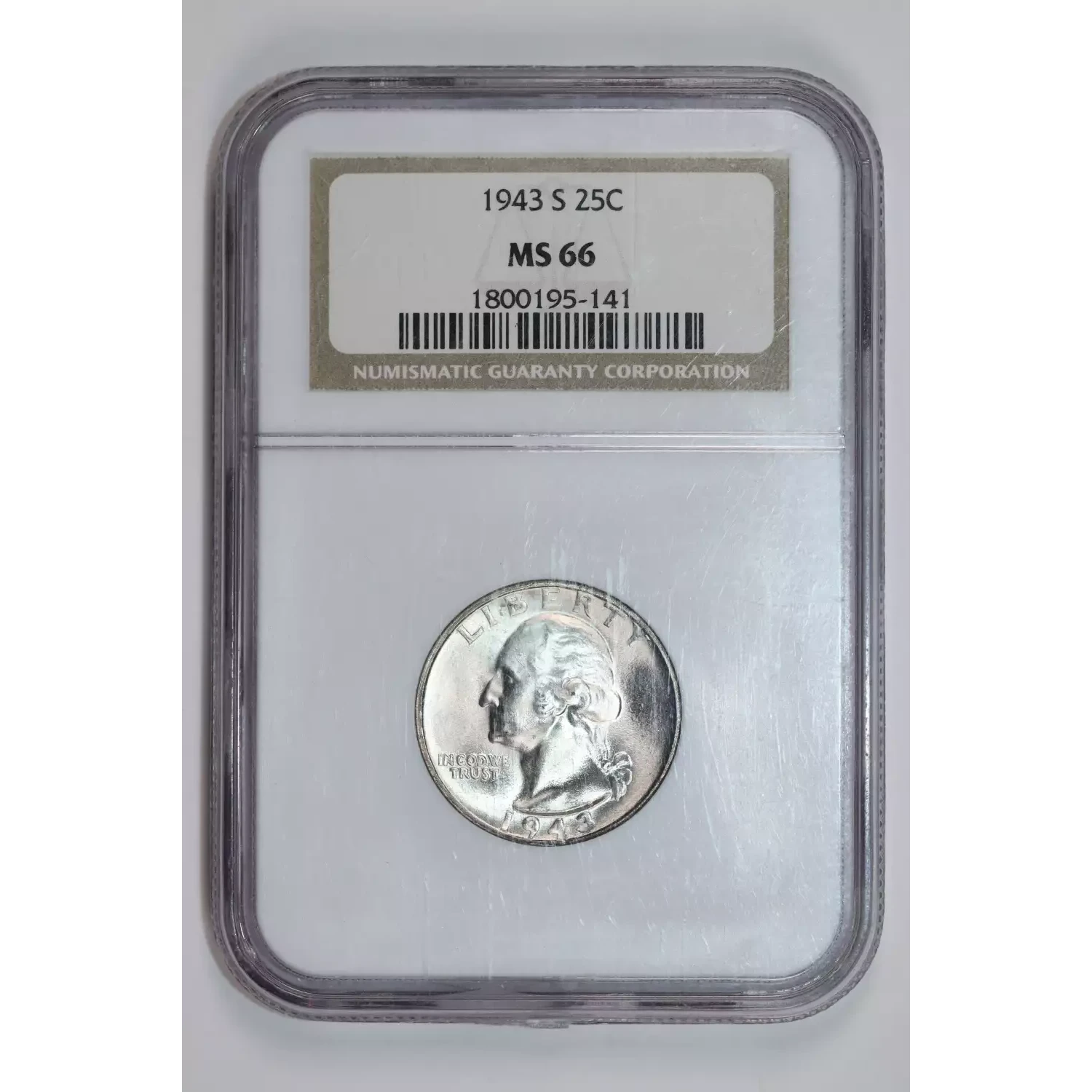 1943-S Quarter Dollars Silver Coinage NGC MS-66