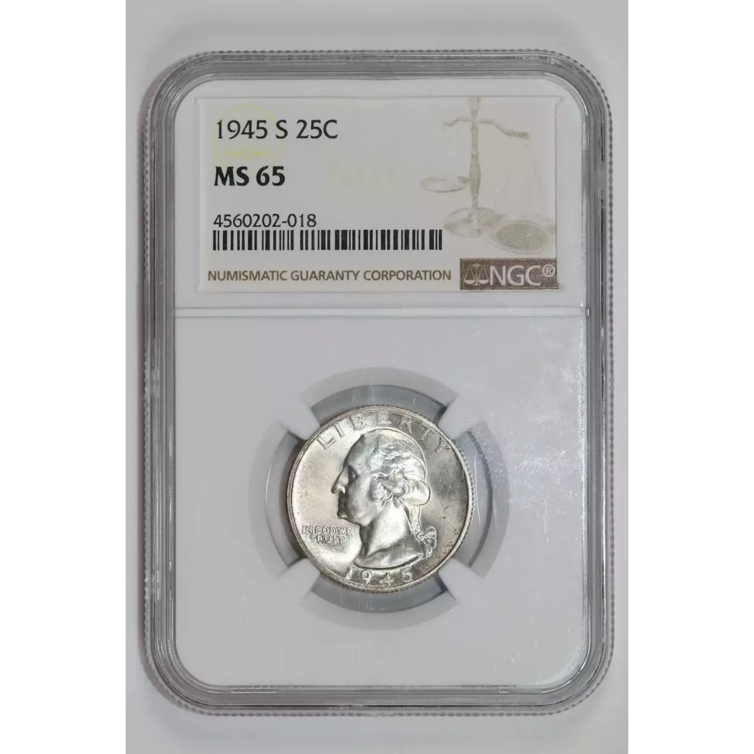 1945-S Quarter Dollars Silver Coinage NGC MS-65