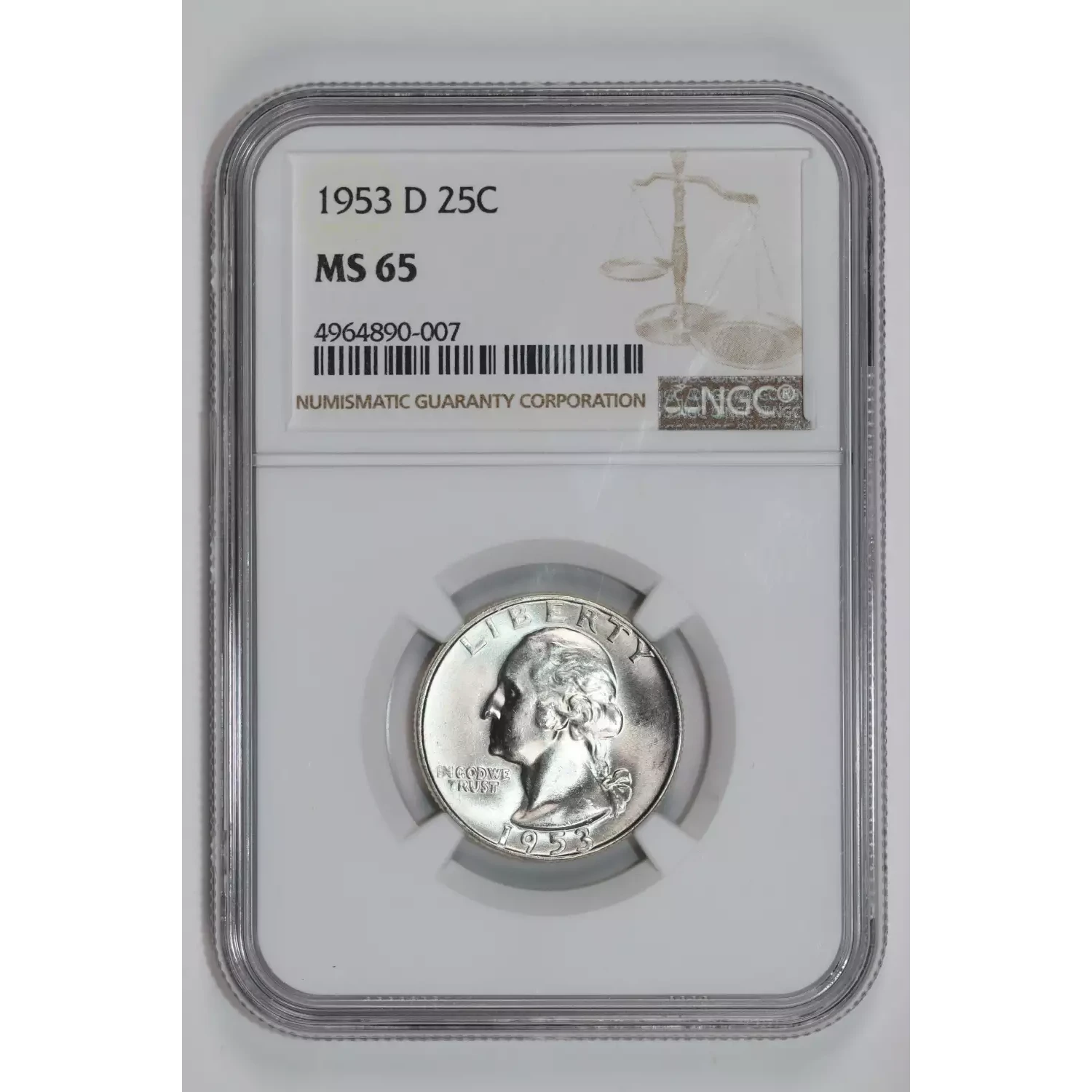 1953-D Quarter Dollars Silver Coinage NGC MS-65