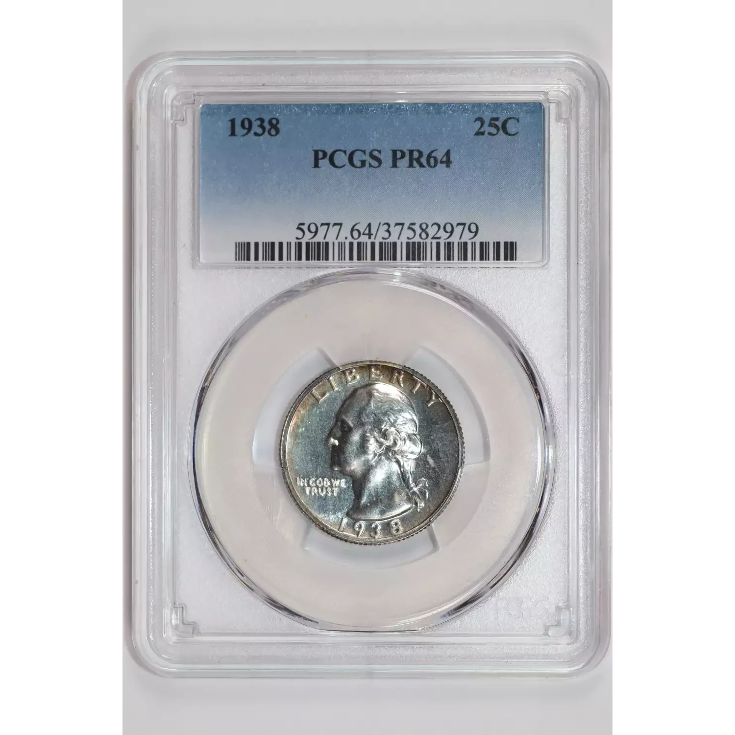 1938 PROOF WASHINGTON QUARTER PCGS PR64
