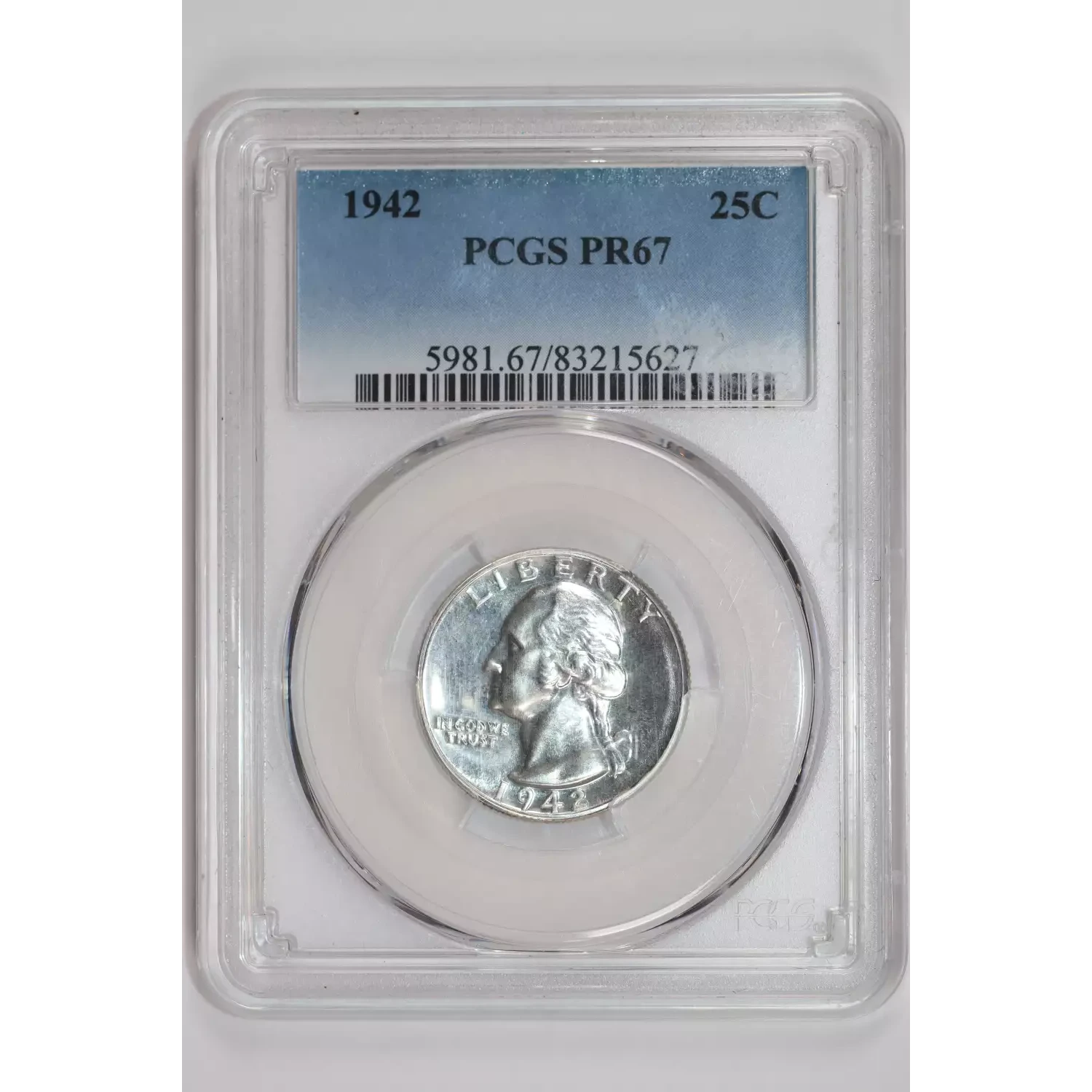 1942 PROOF WASHINGTON QUARTER PCGS PR67