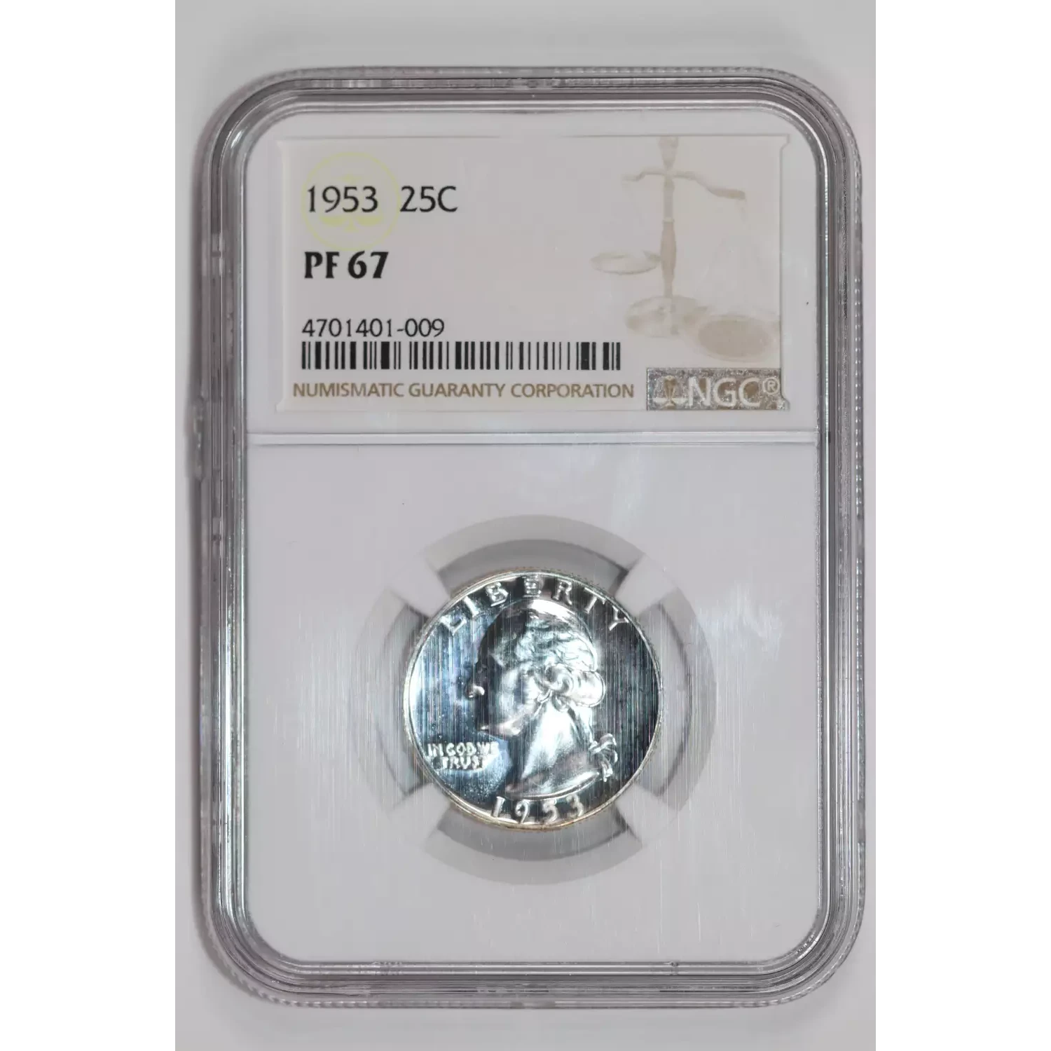 1953 PROOF WASHINGTON QUARTER NGC PR67