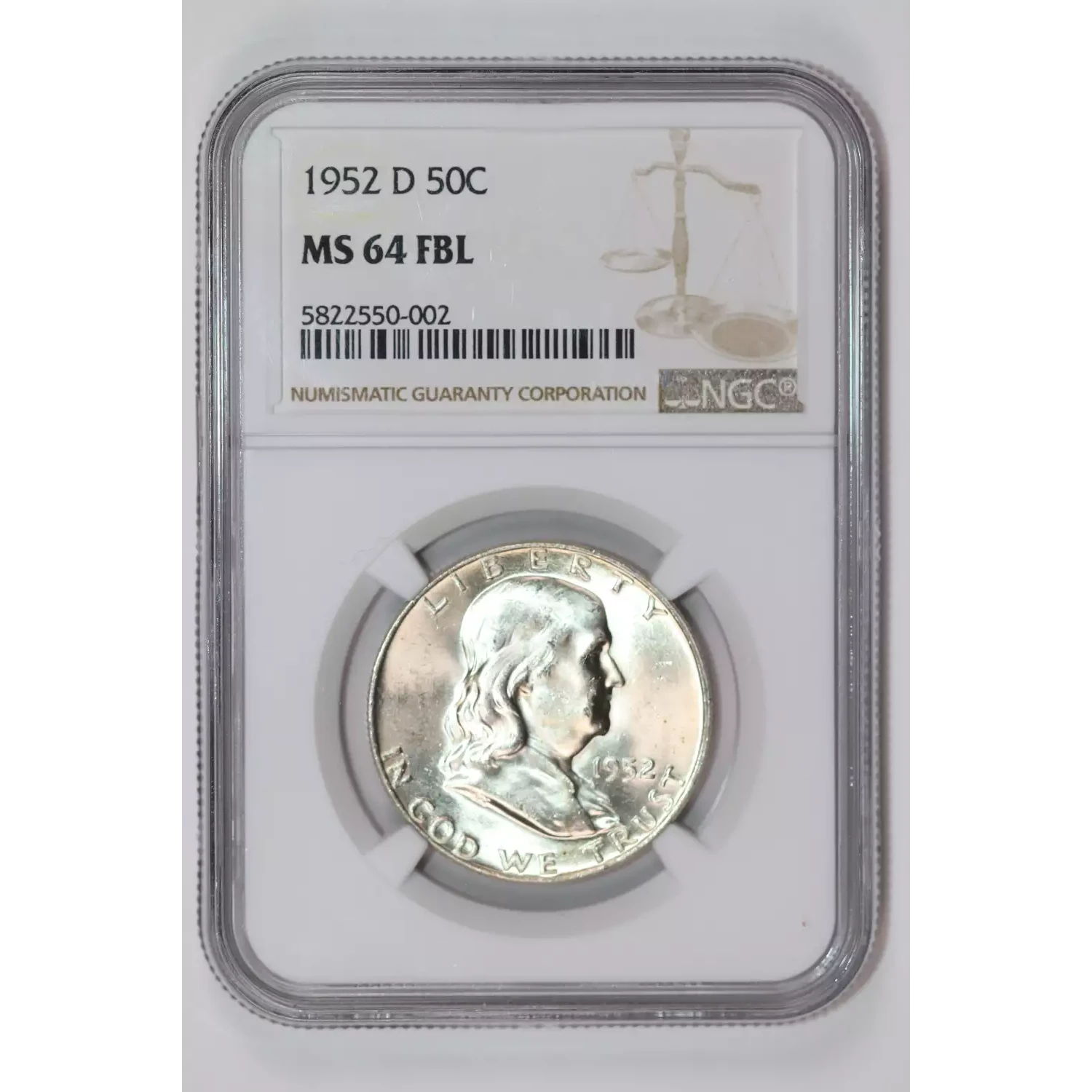 1952-D FRANKLIN HALF DOLLAR NGC MS64 FBL