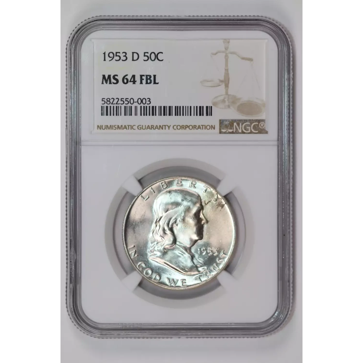 1953-D FRANKLIN HALF DOLLAR NGC MS64 FBL