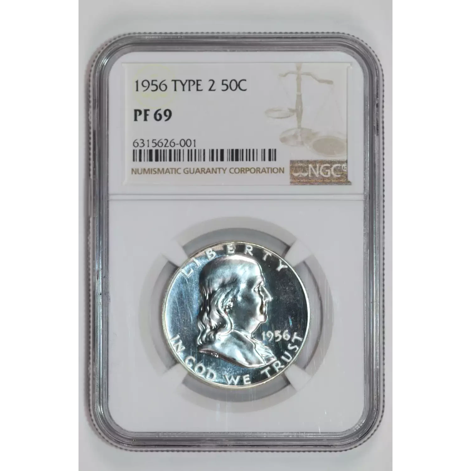 1956 TYPE 2 PROOF FRANKLIN HALF DOLLAR NGC PR69