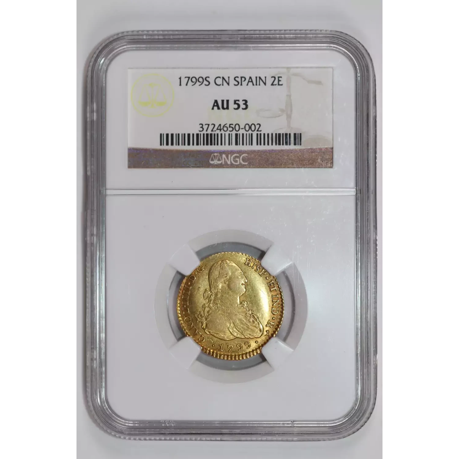 1799 S CN SPAIN GOLD 2 ESCUDOS NGC AU53