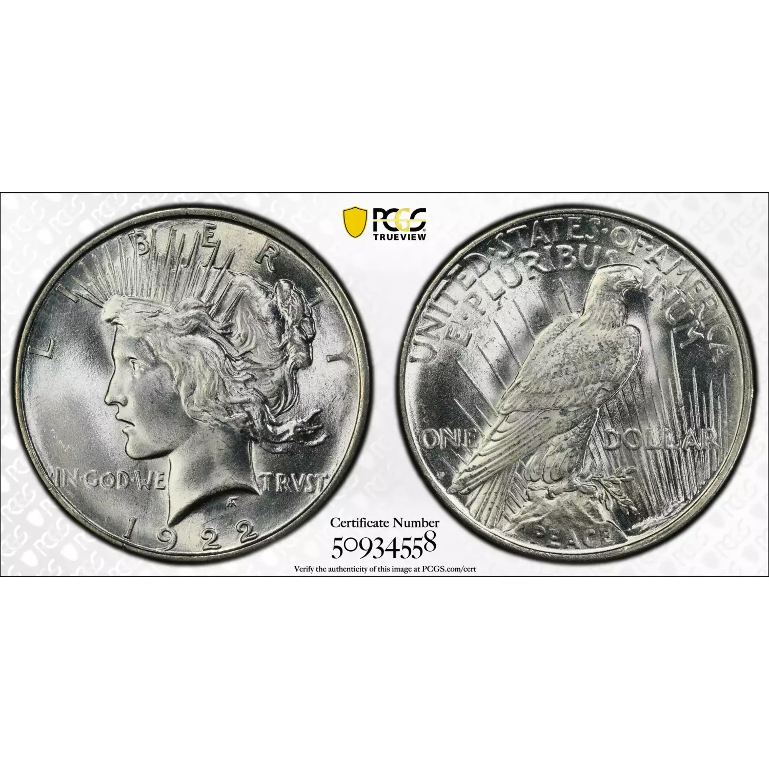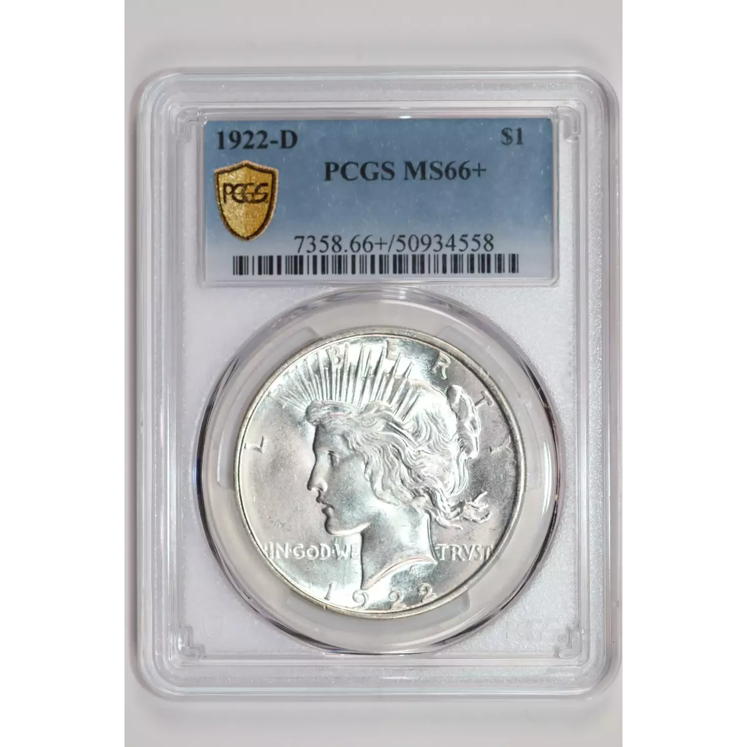 1922-D PEACE DOLLAR PCGS MS66+ VERY PQ!