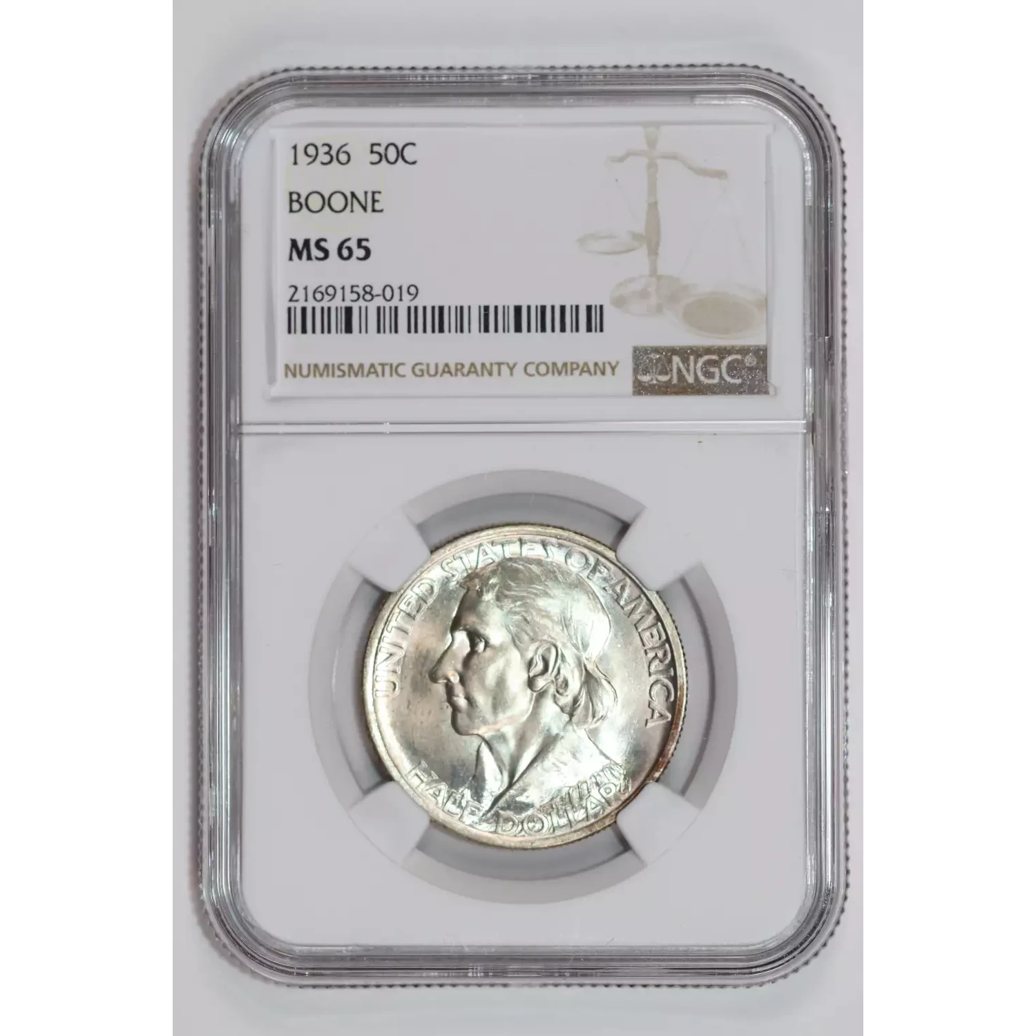 1936 BOONE COMMEMORATIVE HALF DOLLAR NGC MS65
