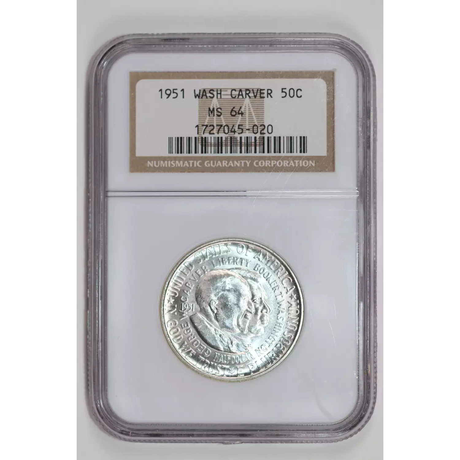 1951 WASHINGTON/CARVER COMMEMORATIVE HALF DOLLAR NGC MS64