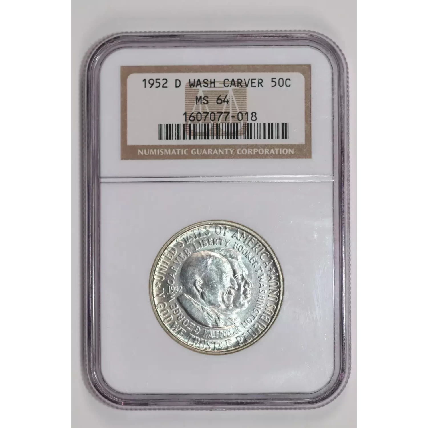 1952-D WASHINGTON/CARVER COMMEMORATIVE HALF DOLLAR NGC MS64