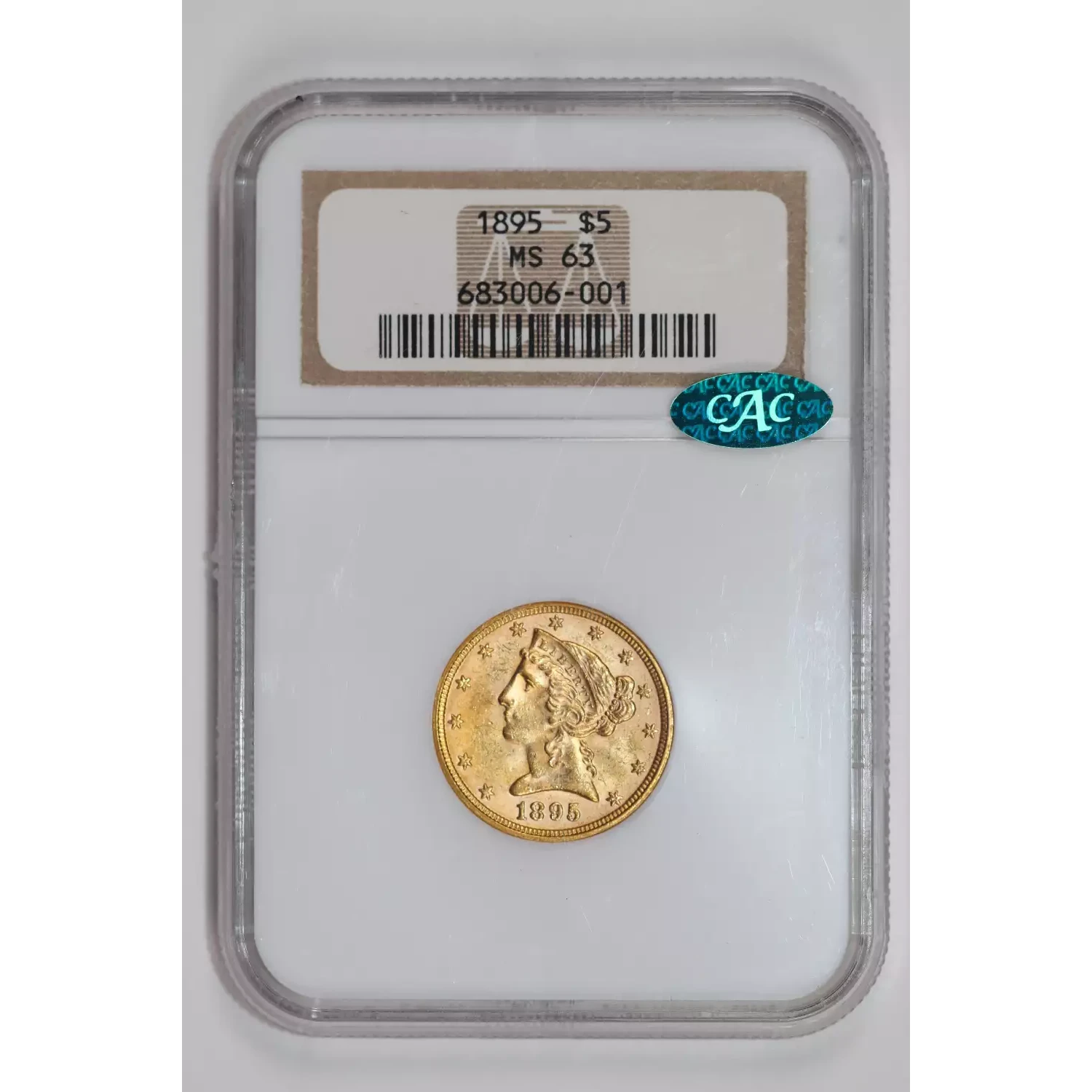 1895 $5 GOLD LIBERTY HALF EAGLE NGC MS63 CAC
