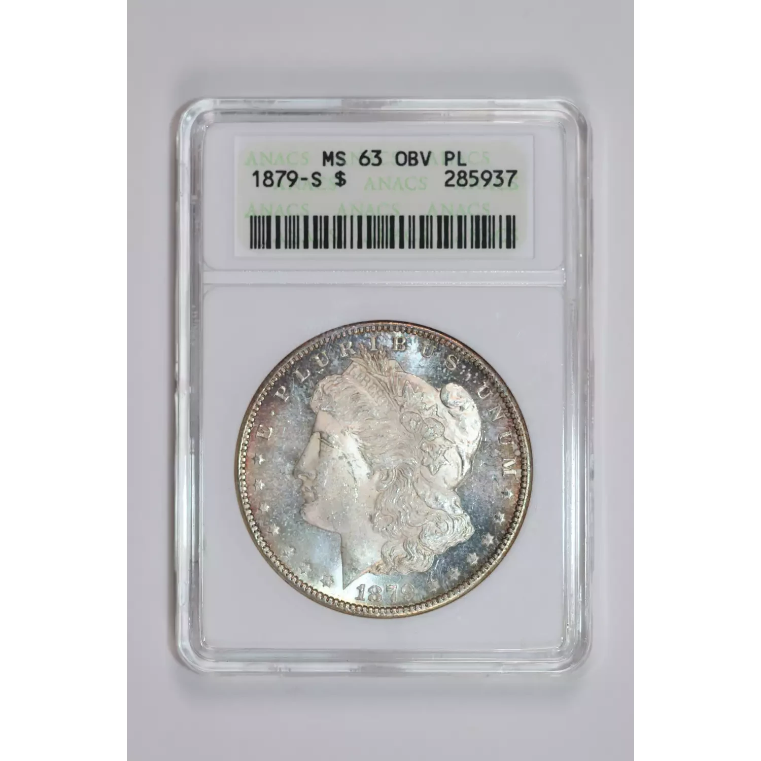 1879-S MORGAN DOLLAR ANACS MS63 OBVERSE PL! VERY PQ! SOAPBOX
