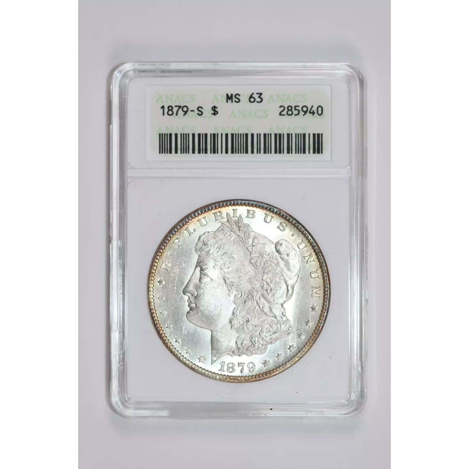 1879-S MORGAN DOLLAR ANACS MS63 PQ! SOAPBOX