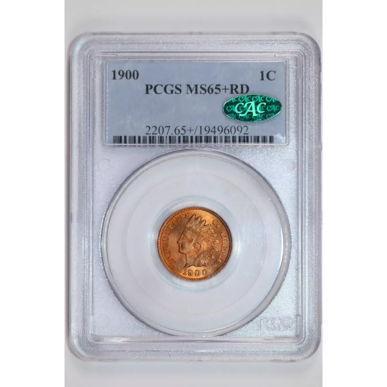 1900 INDIAN HEAD CENT PCGS MS65+ RED CAC - GORGEOUS PQ COIN!