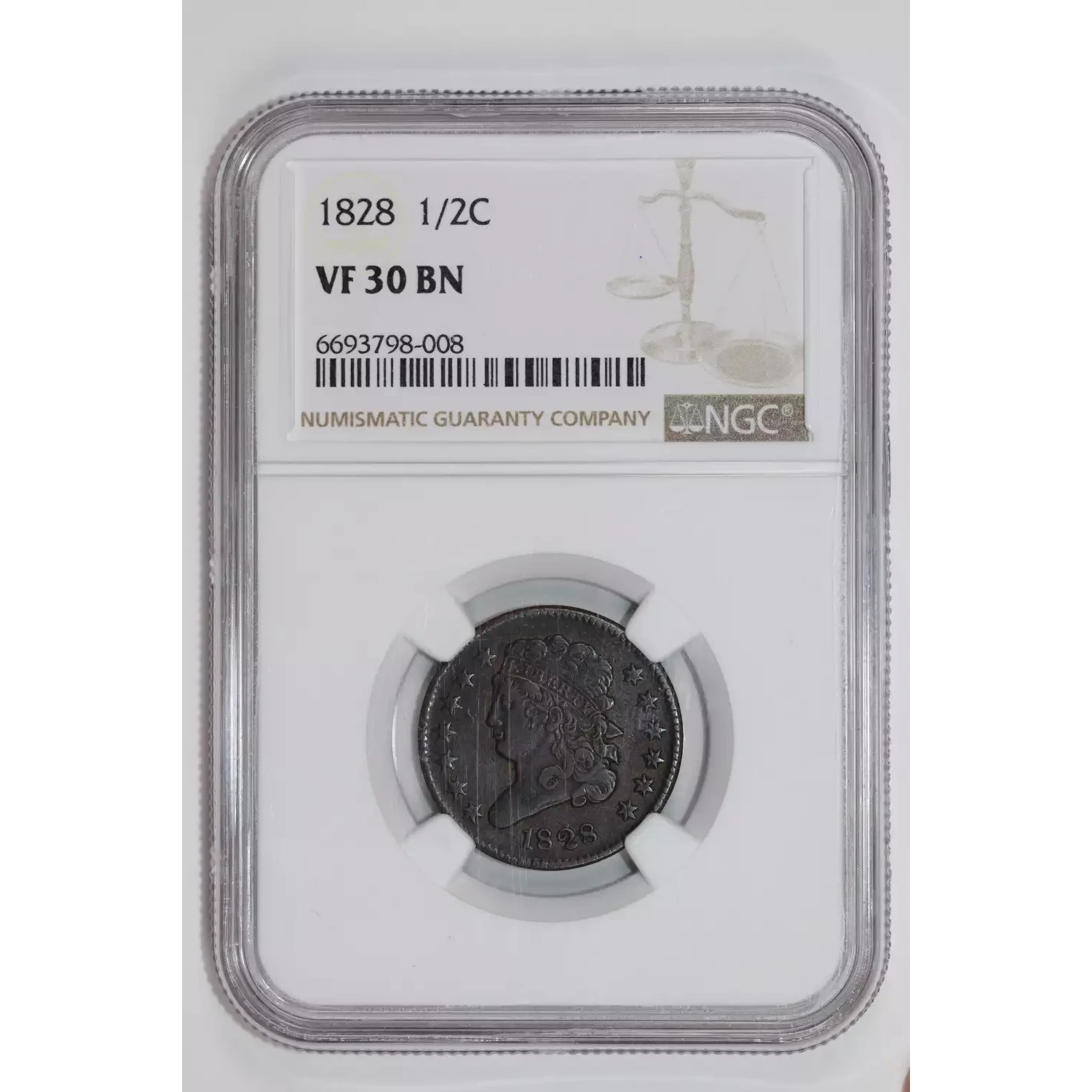 1828 CLASSIC HEAD HALF CENT NGC VF30 BN