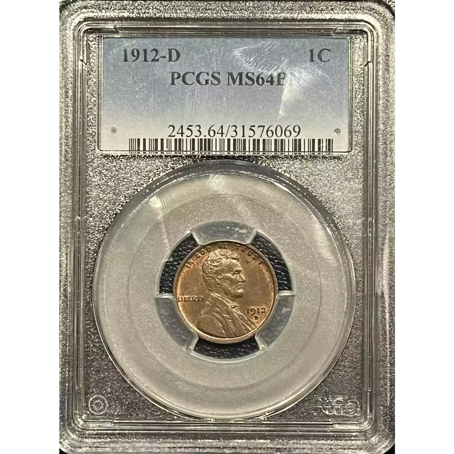 1912-D Small Cents Lincoln, Wheat Ears Reverse PCGS MS-64 BN