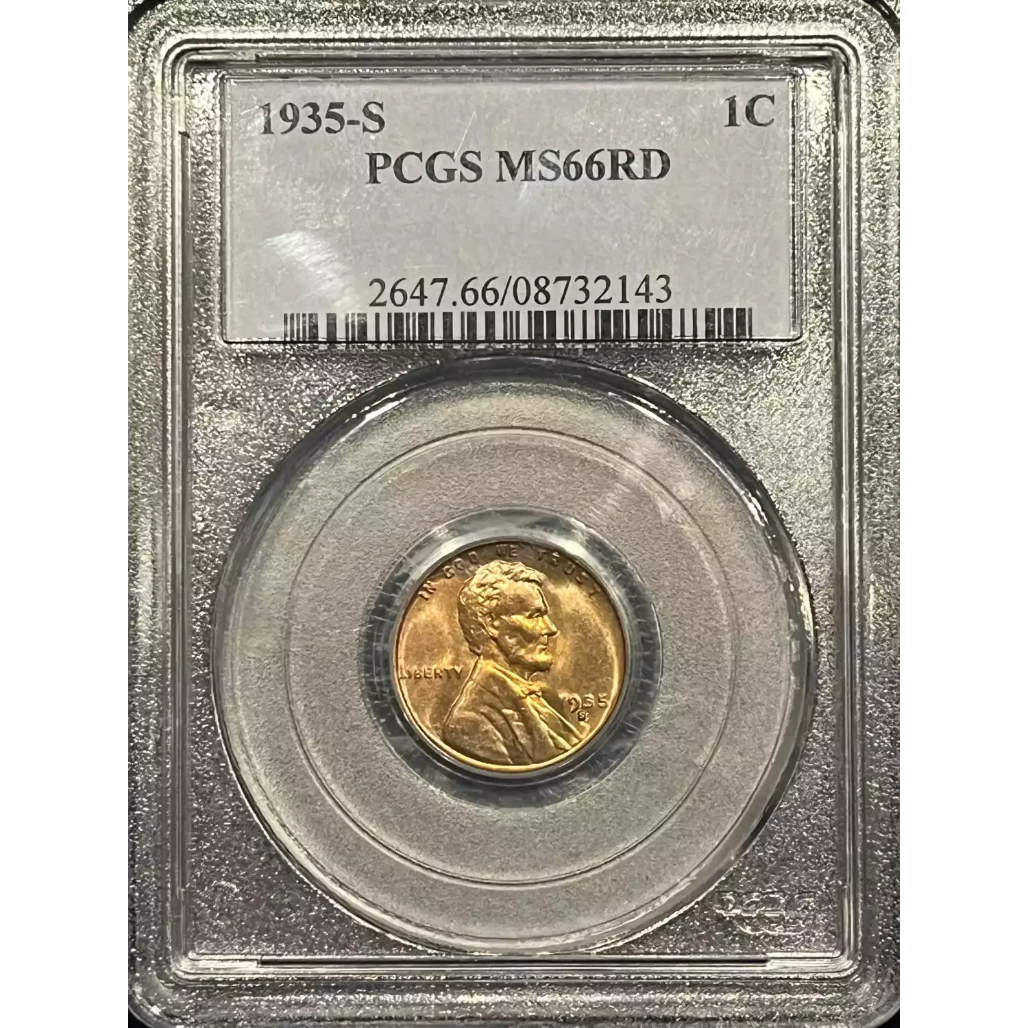 1935-S Small Cents Lincoln, Wheat Ears Reverse PCGS MS-66 RD