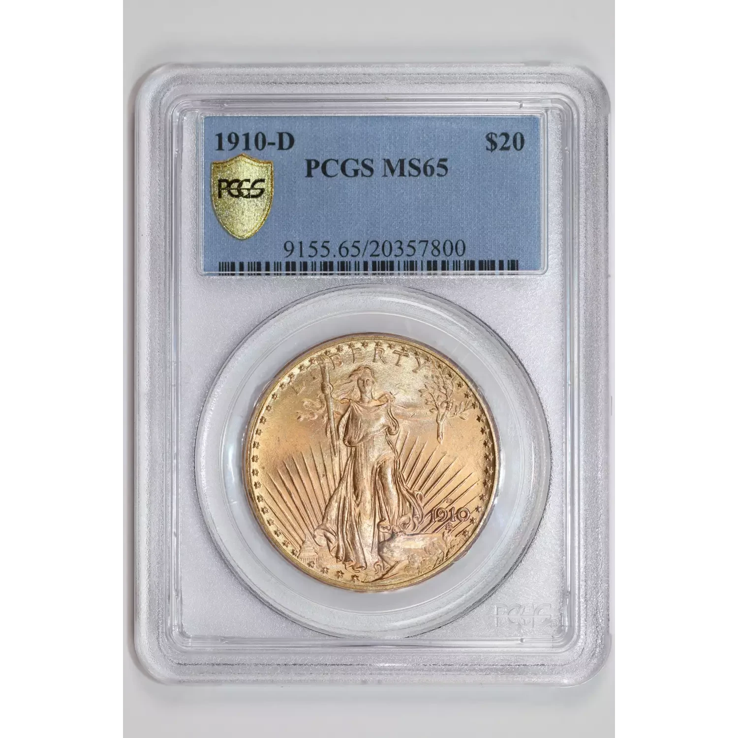 1910-D $20 GOLD SAINT GAUDENS DOUBLE EAGLE PCGS MS65 VERY PQ!