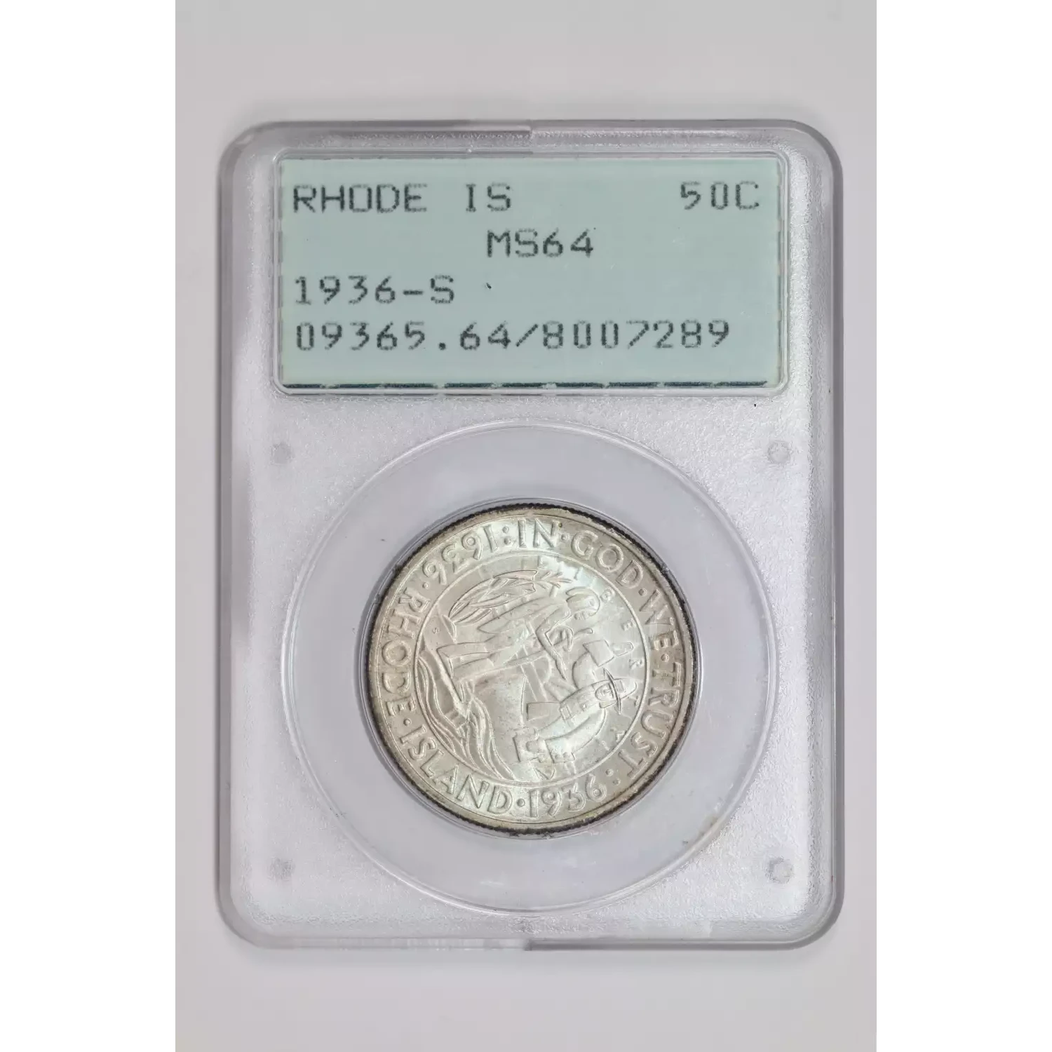 1936-S RHODE ISLAND COMMEMORATIVE HALF DOLLAR PCGS MS64 RATTLER LOOKS NICER!