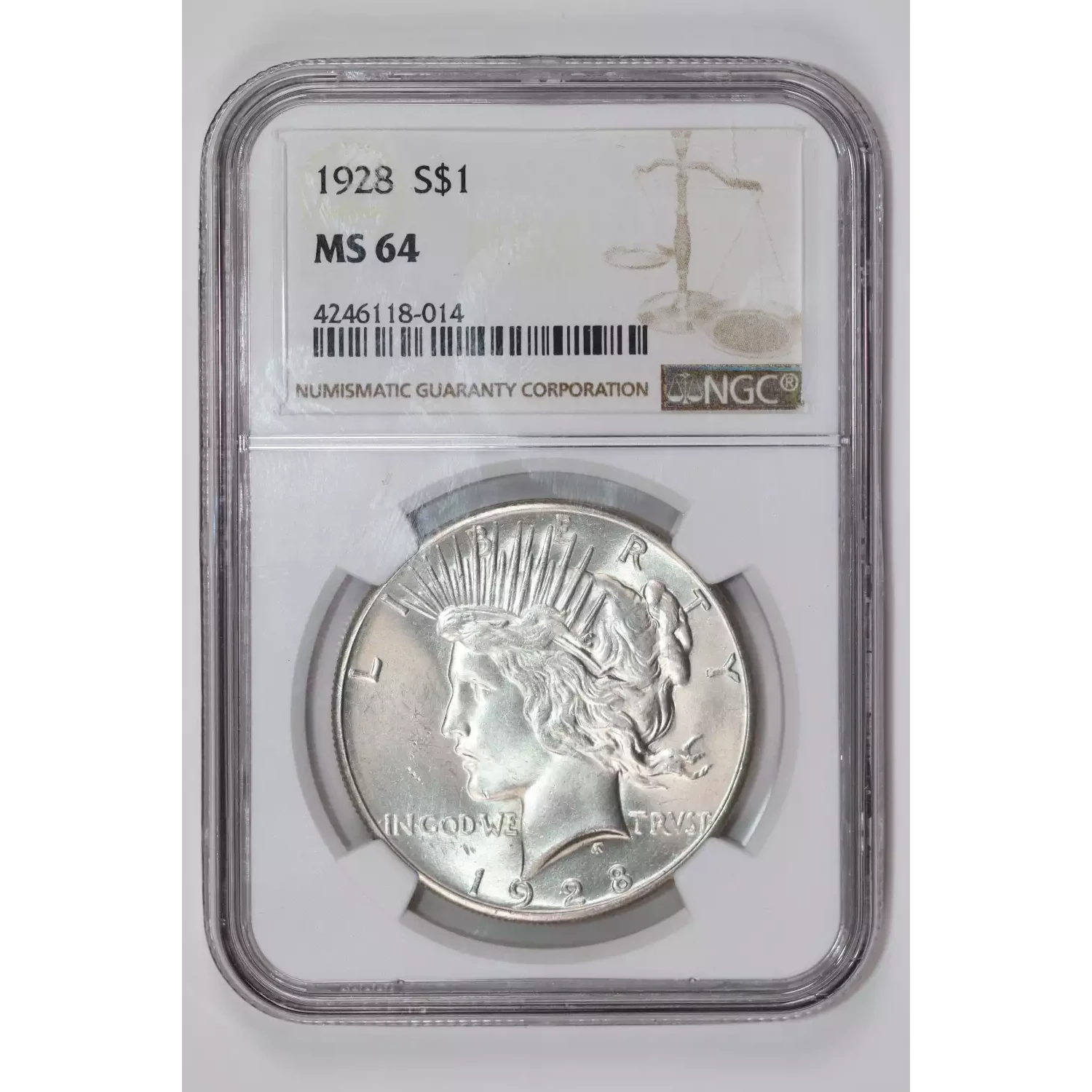 1928 PEACE DOLLAR NGC MS64 - VERY PQ!