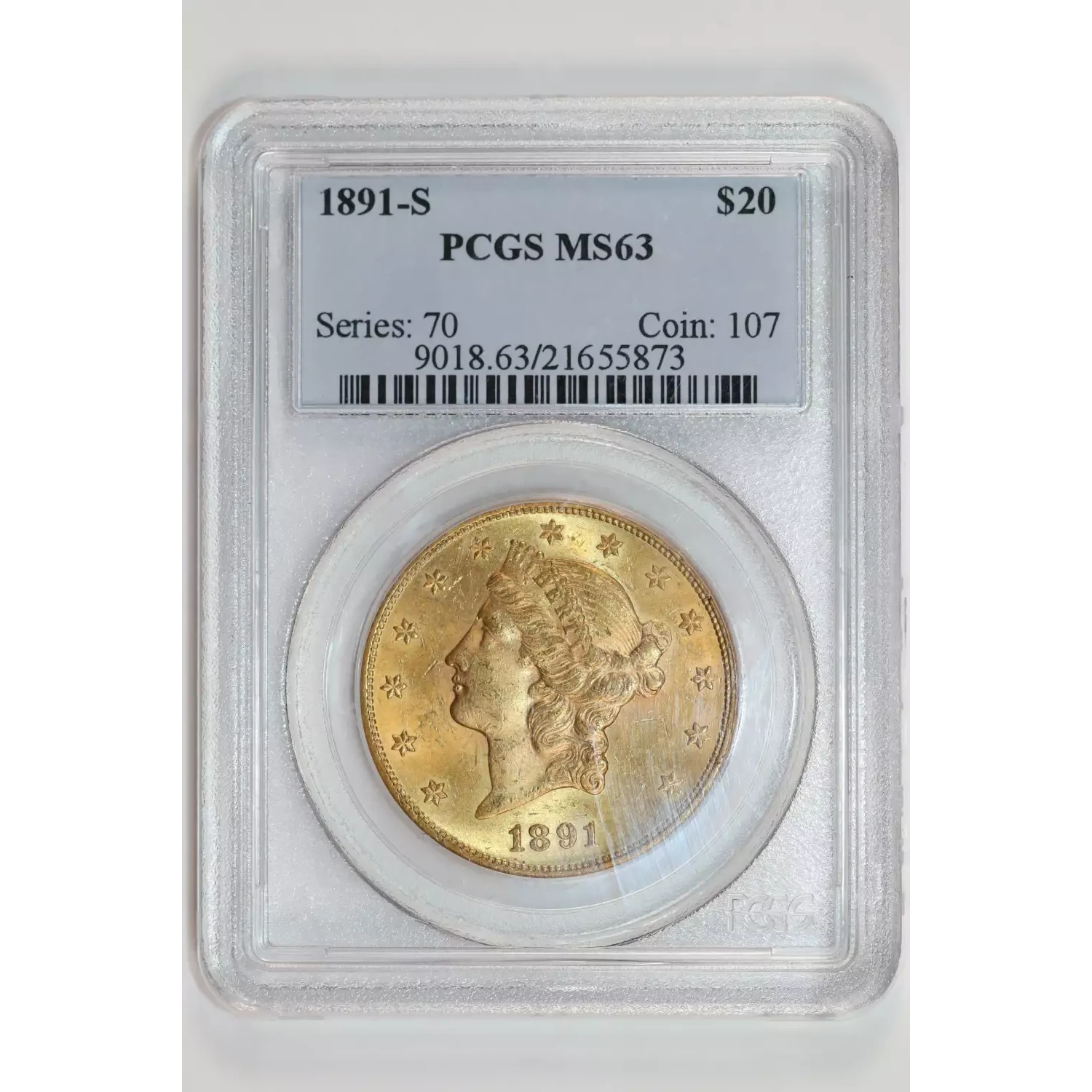 1891-S $20 GOLD LIBERTY DOUBLE EAGLE PCGS MS63