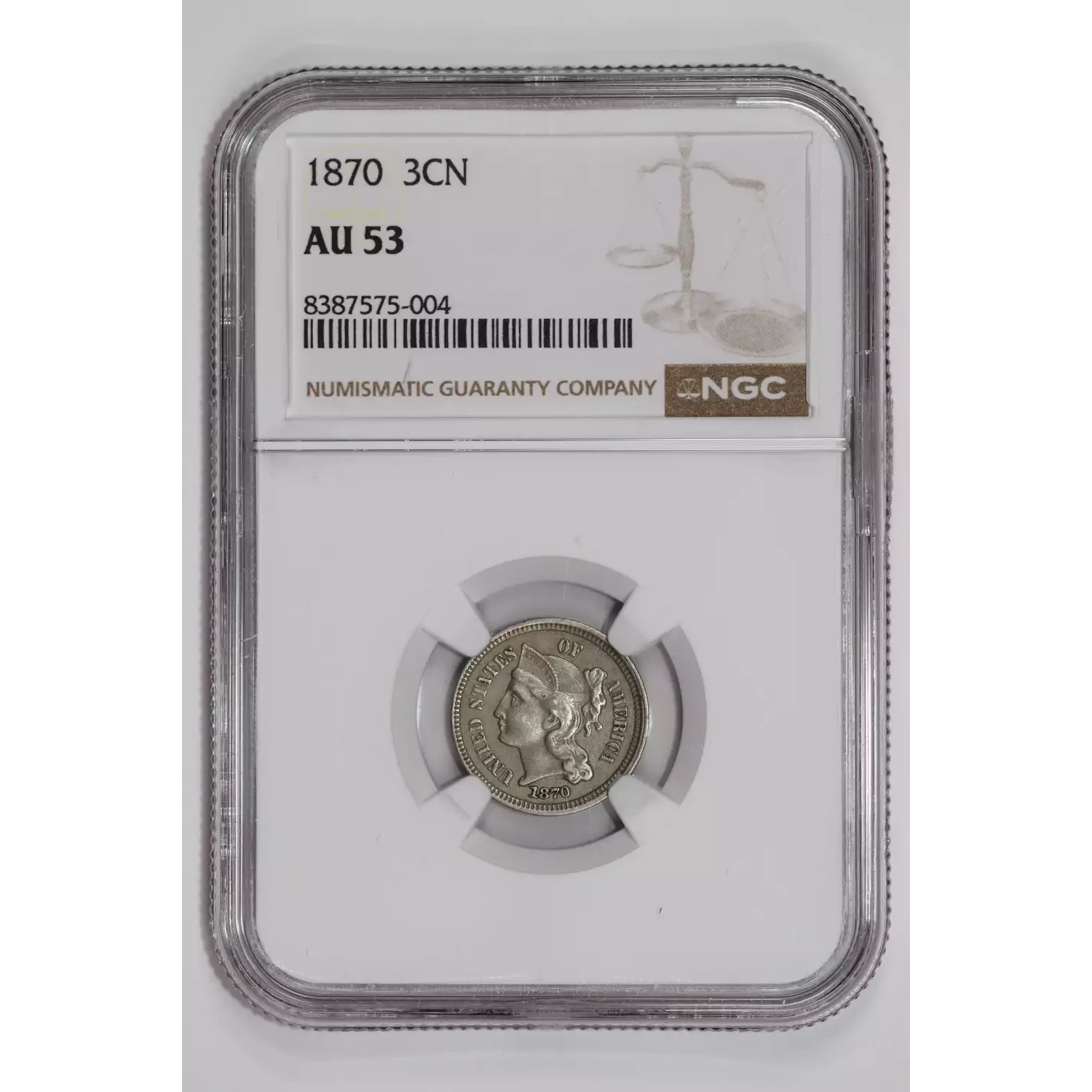 1870 Three Cent Pieces (Nickel) NGC AU-53