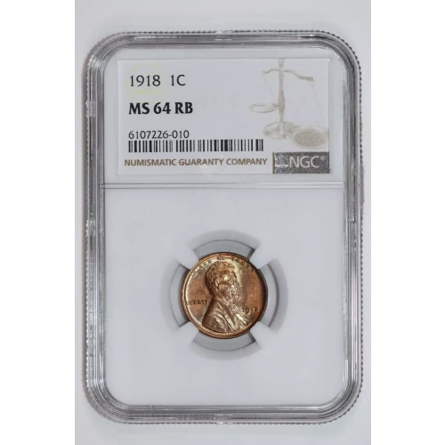 1918 LINCOLN WHEAT CENT NGC MS64 RB