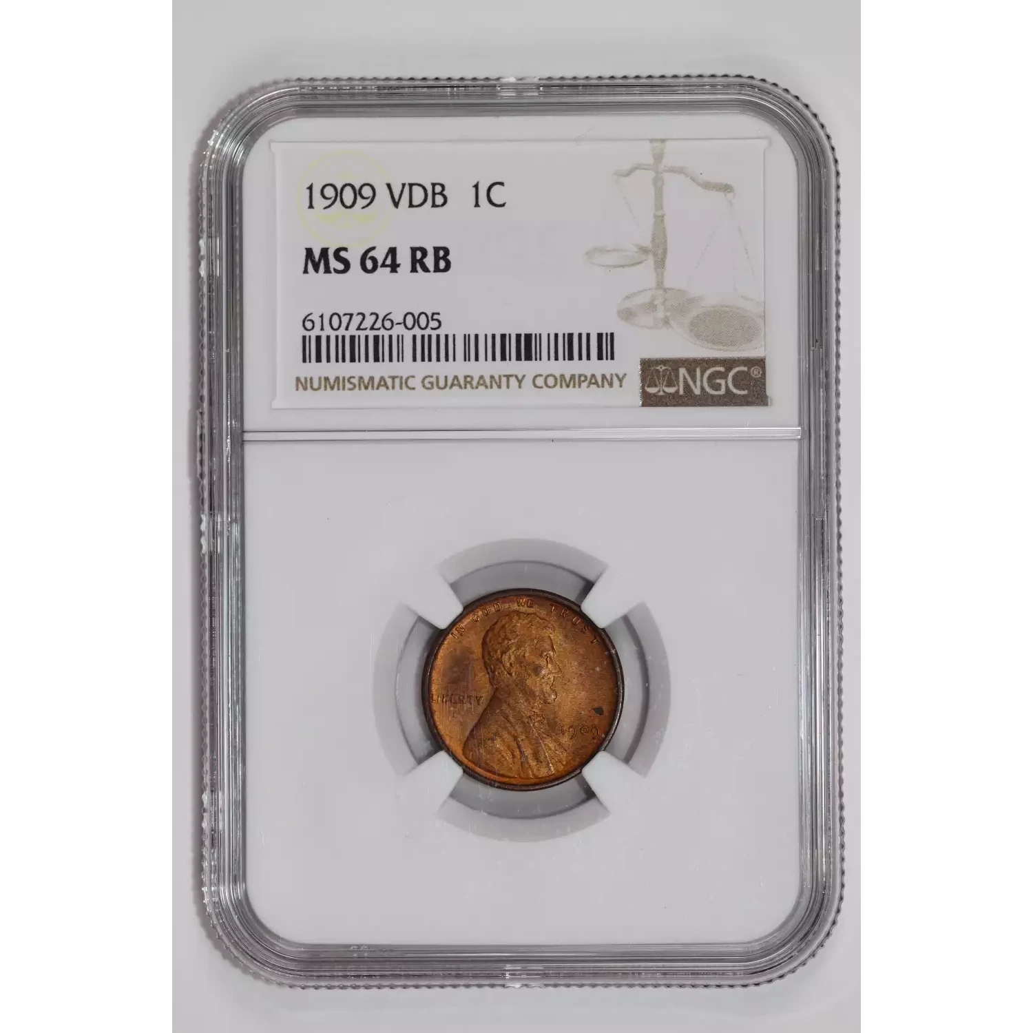 1909 VDB LINCOLN WHEAT CENT NGC MS64 RB
