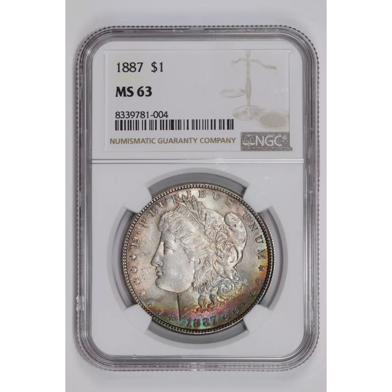 1887 MORGAN DOLLAR NGC MS63 PRETTY RAINBOW TONING!