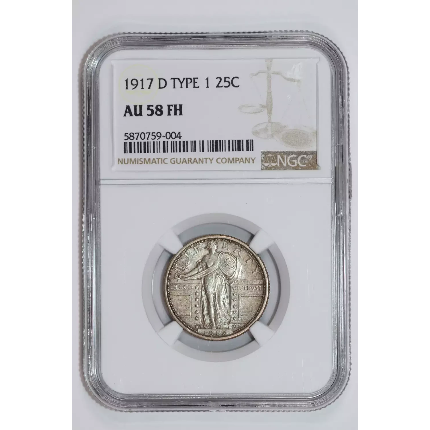 1917-D TYPE 1 STANDING LIBERTY QUARTER NGC AU58 FH NICE ORIGINAL!