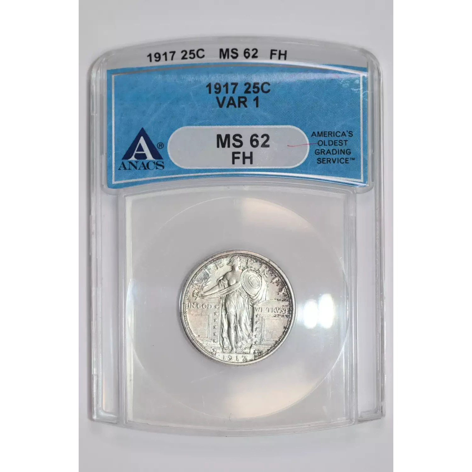 1917 TYPE 1 STANDING LIBERTY QUARTER ANACS MS62 FH