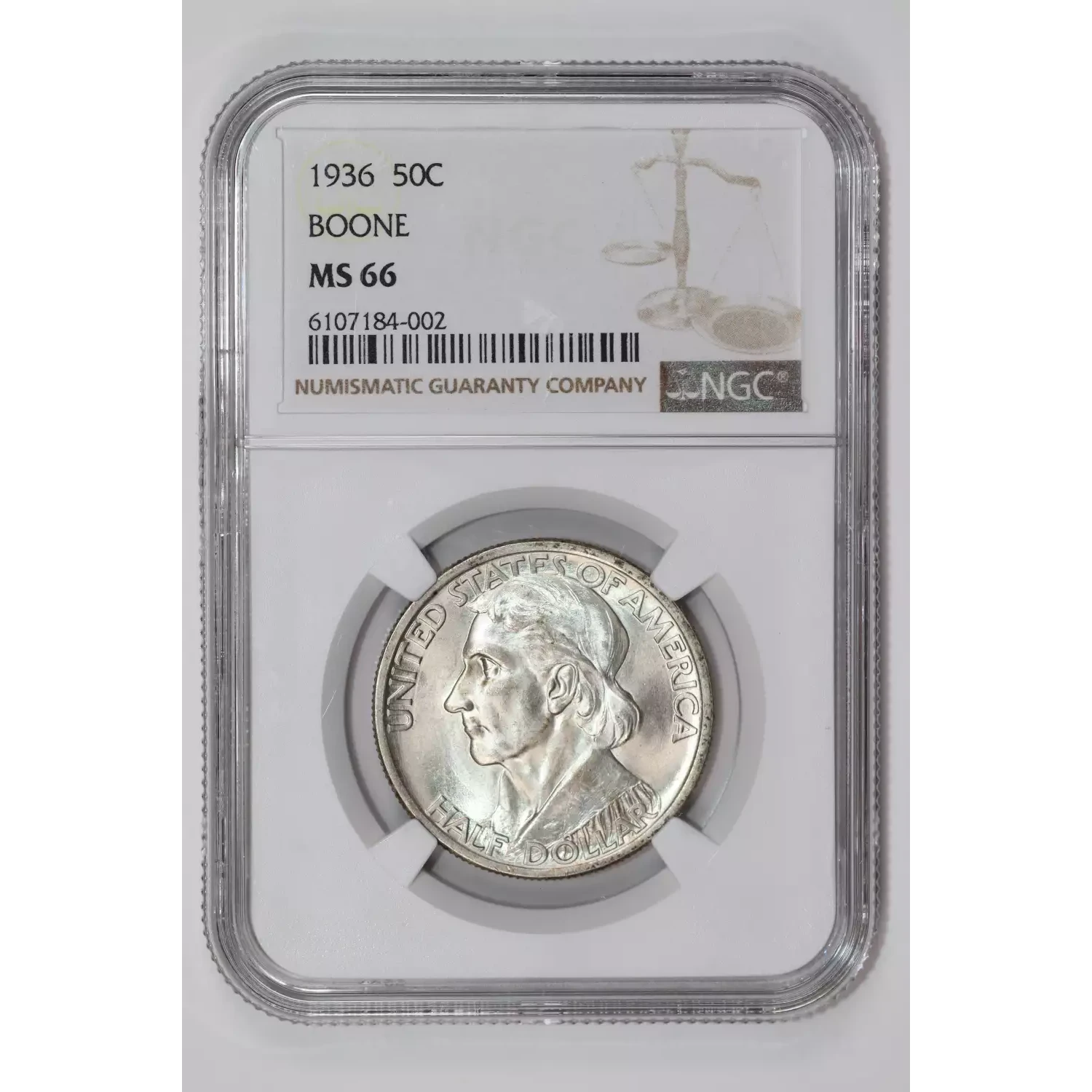 1936 BOONE COMMEMORATIVE HALF DOLLAR NGC MS66