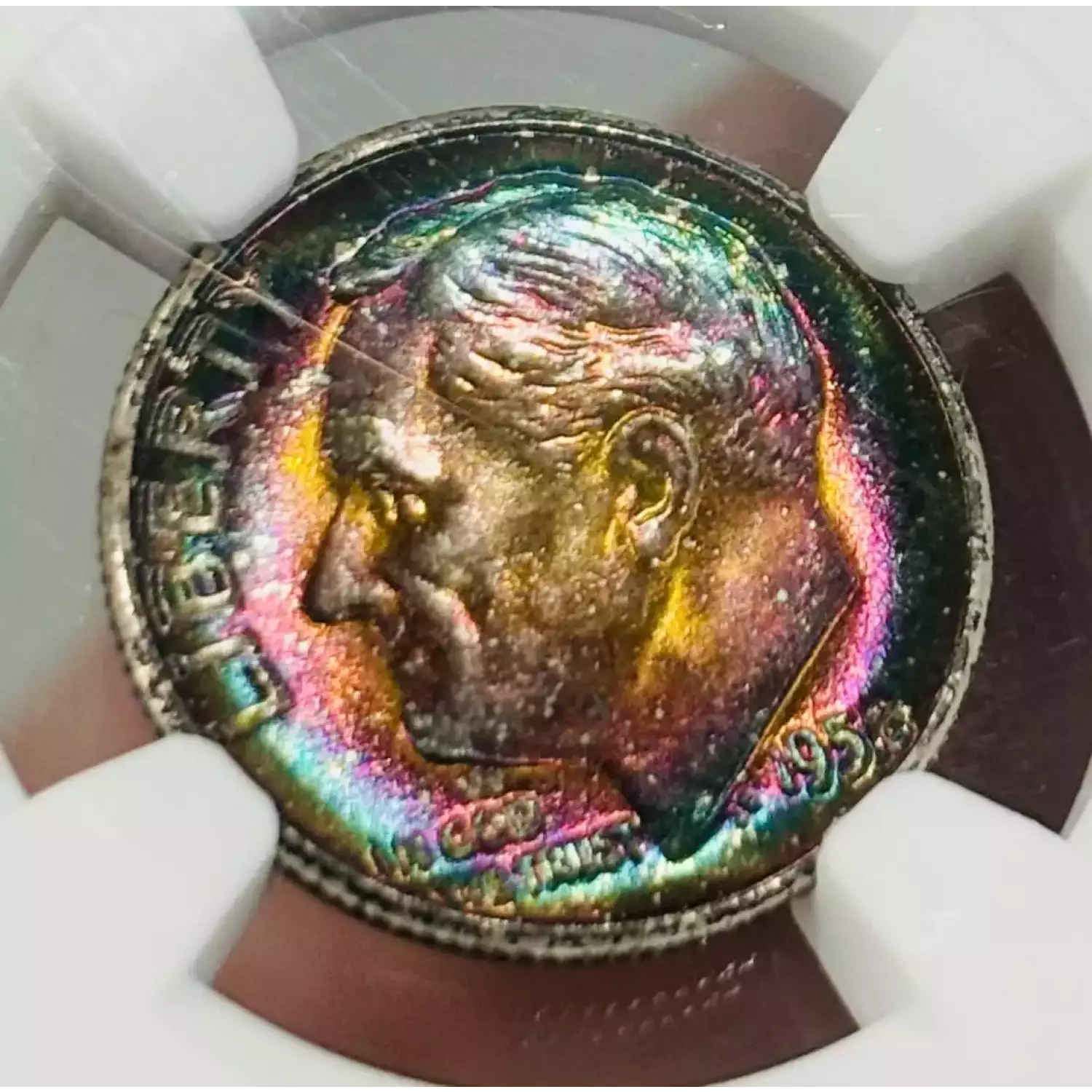 1958 ROOSEVELT DIME NGC MS67+* STAR MONSTER RAINBOW TONED! VIBRANT!