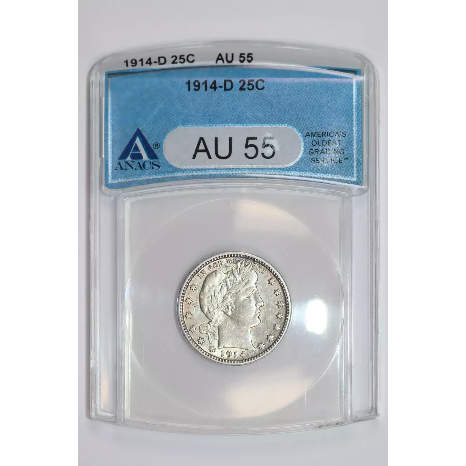 1914-D Quarter Dollars Barber or Liberty Head ANACS AU-55