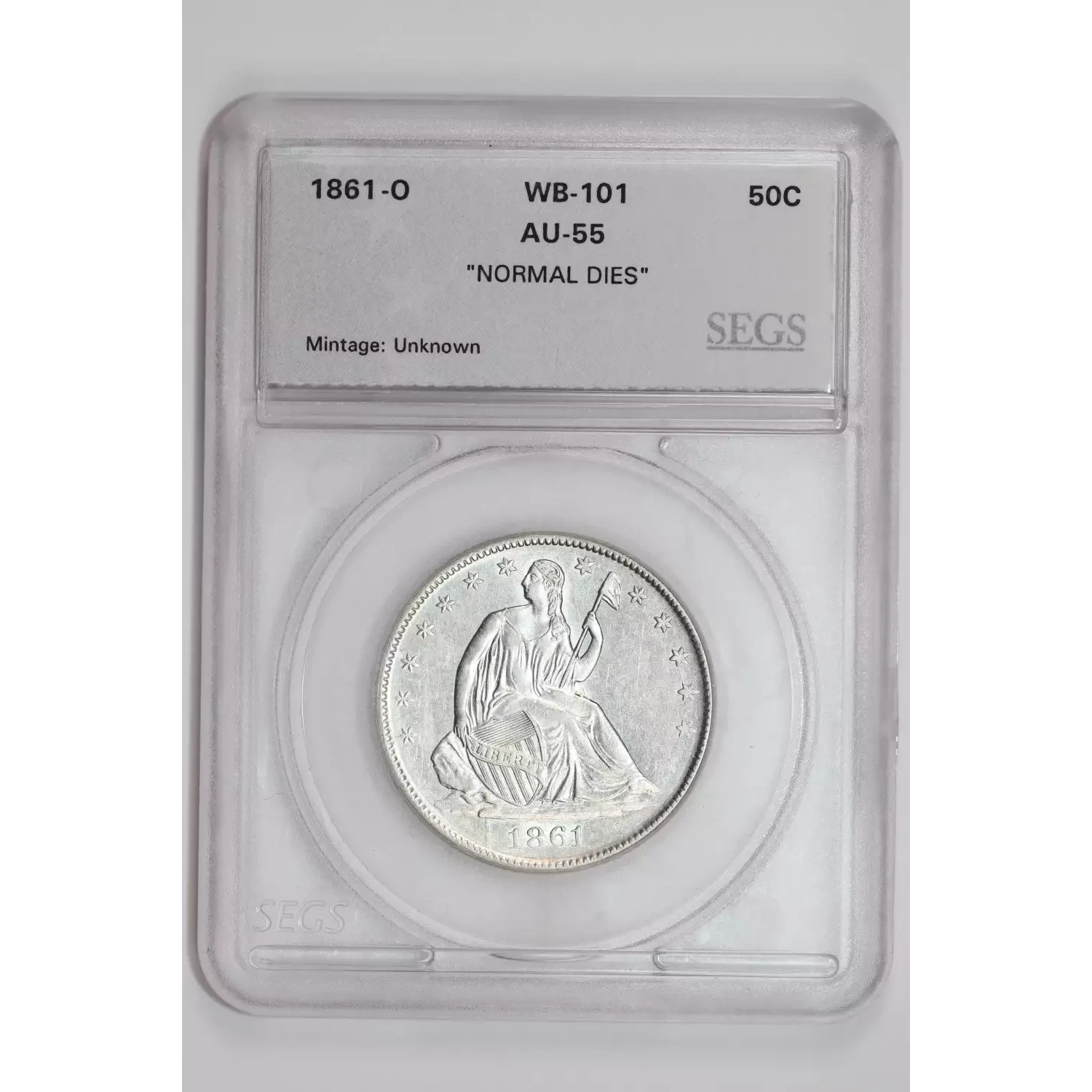 1861-O SEATED LIBERTY HALF DOLLAR 'NORMAL DIES" CHOICE AU++