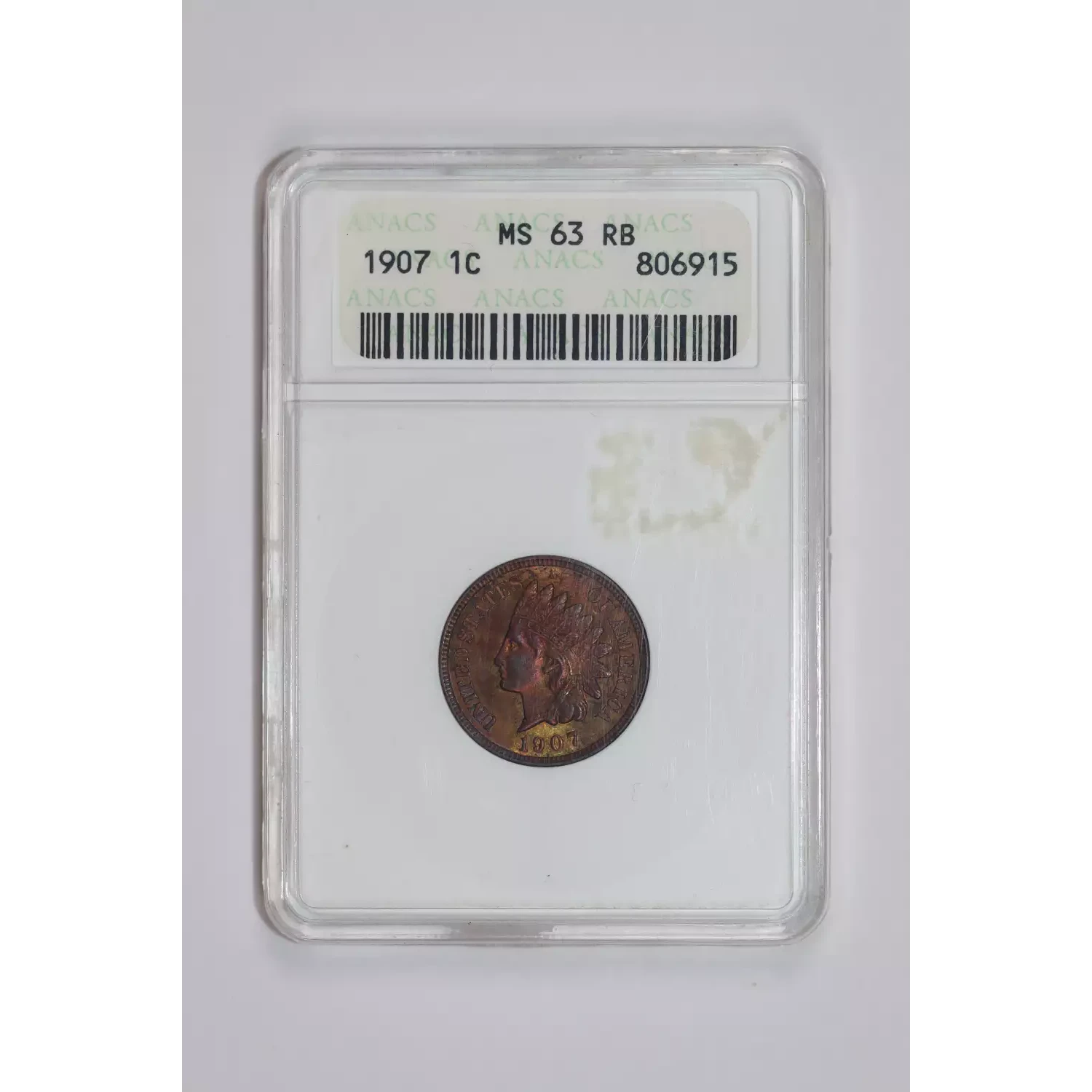 1907 INDIAN HEAD CENT ANACS MS63 RB