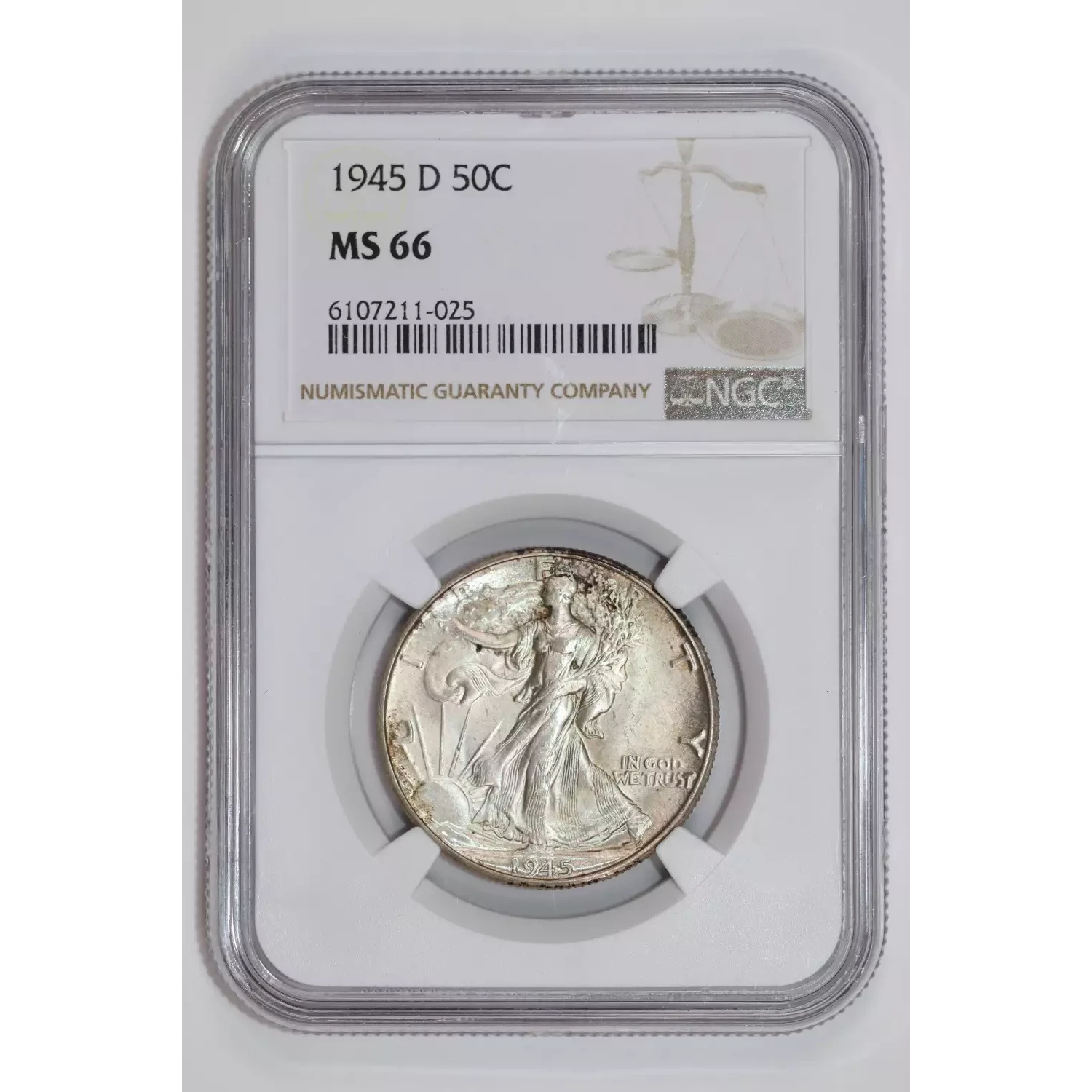 1945-D WALKING LIBERTY HALF DOLLAR NGC MS66