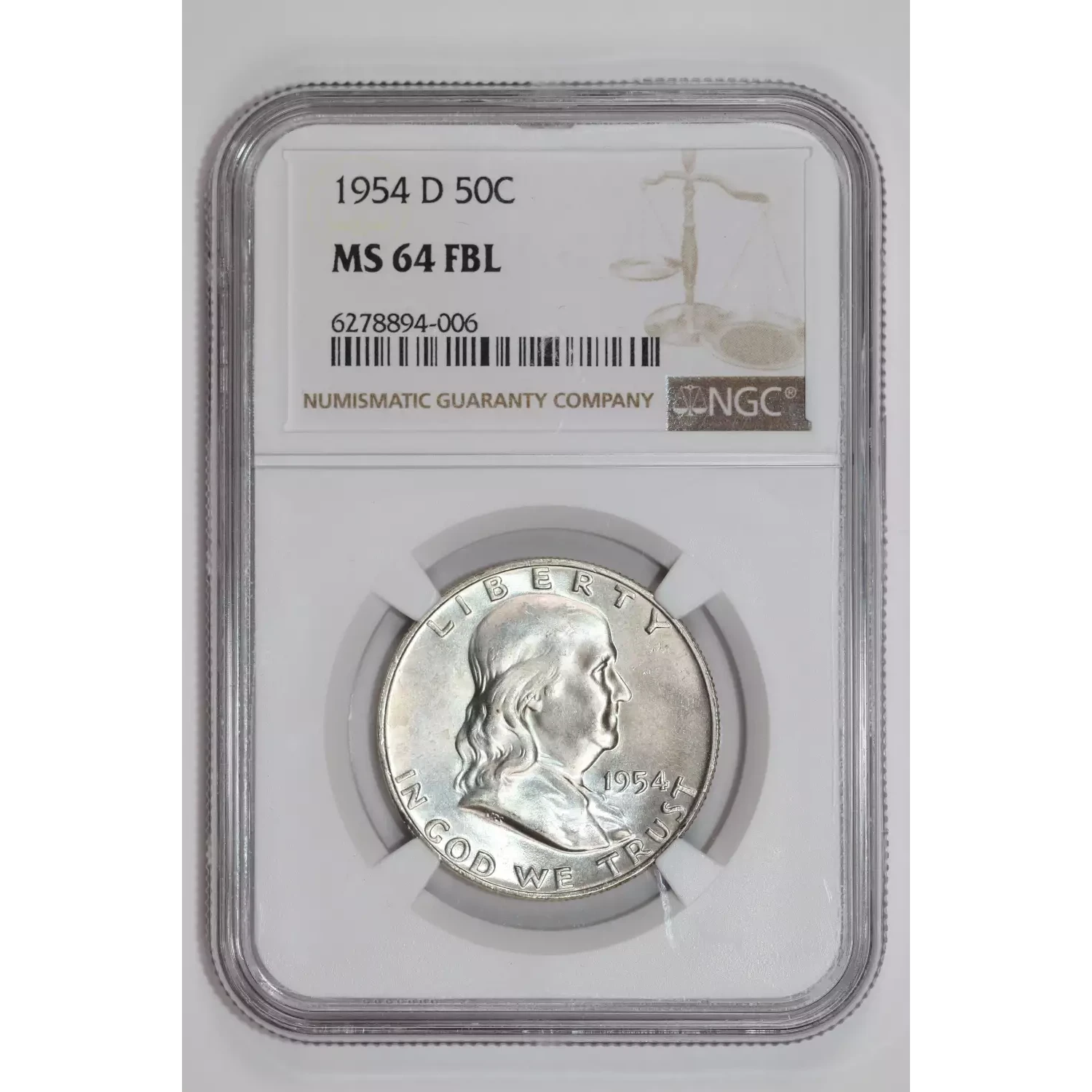 1954-D FRANKLIN HALF DOLLAR NGC MS64 FBL
