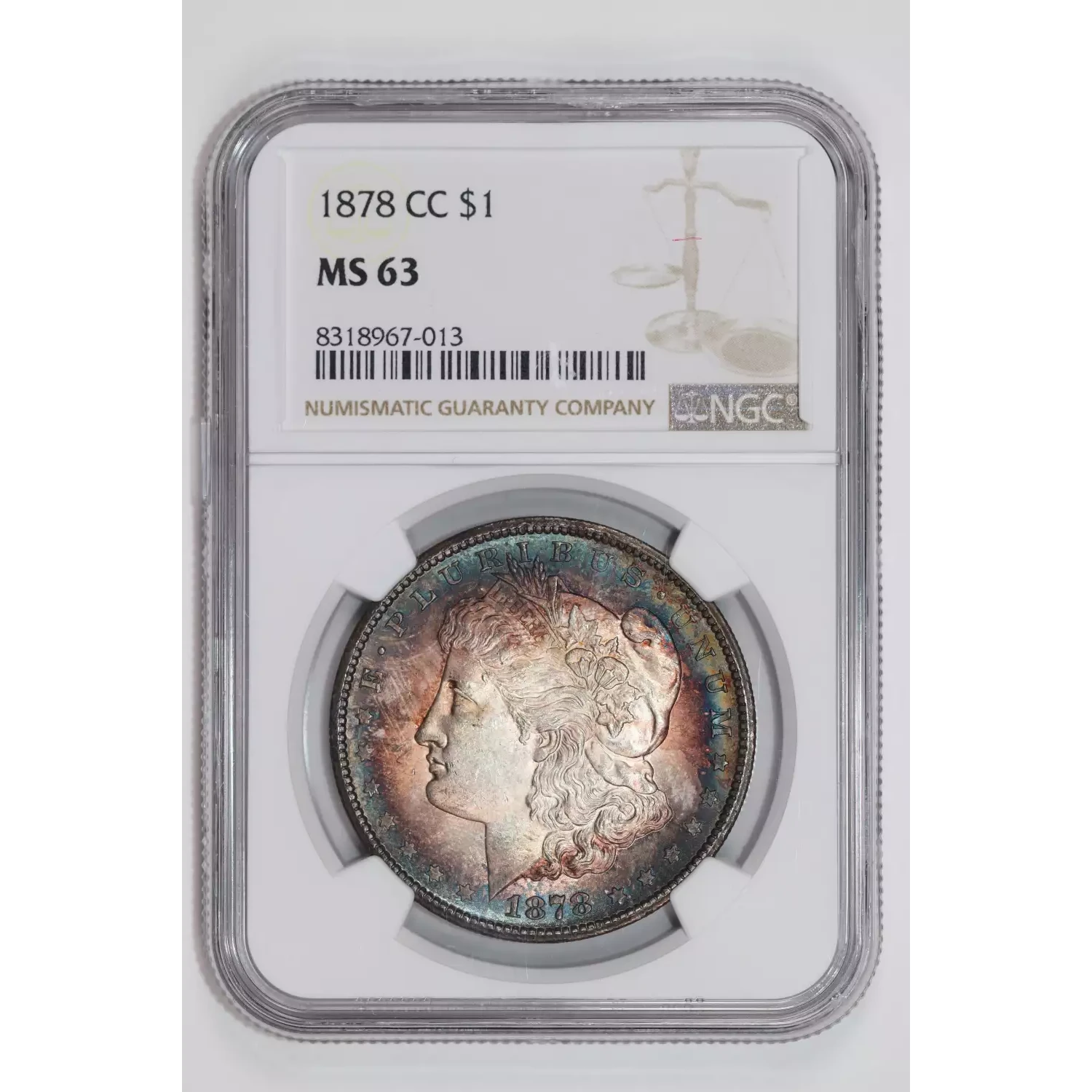 1878-CC MORGAN DOLLAR NGC MS63 PRETTY RAINBOW TONING!